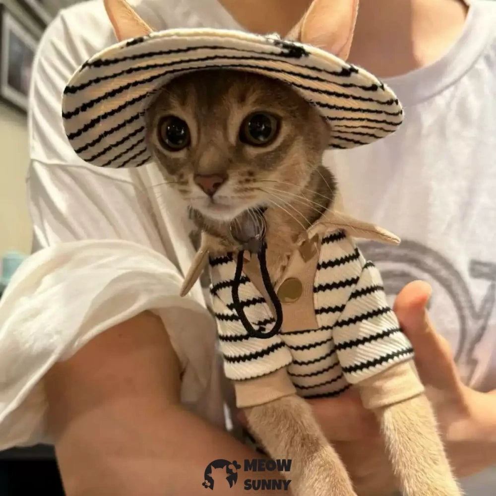 Sphynx Cat Shirt Cotton White Black Polo T-Shirt with hat