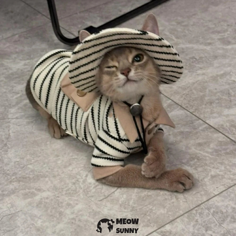 Sphynx Cat Shirt Cotton Hairless Kitten Polo T-Shirt with Sleeves Pullover Cat Pajamas for Sphynx Cornish Rex, Devon Rex, Peterbald (White Black Polo, Small)