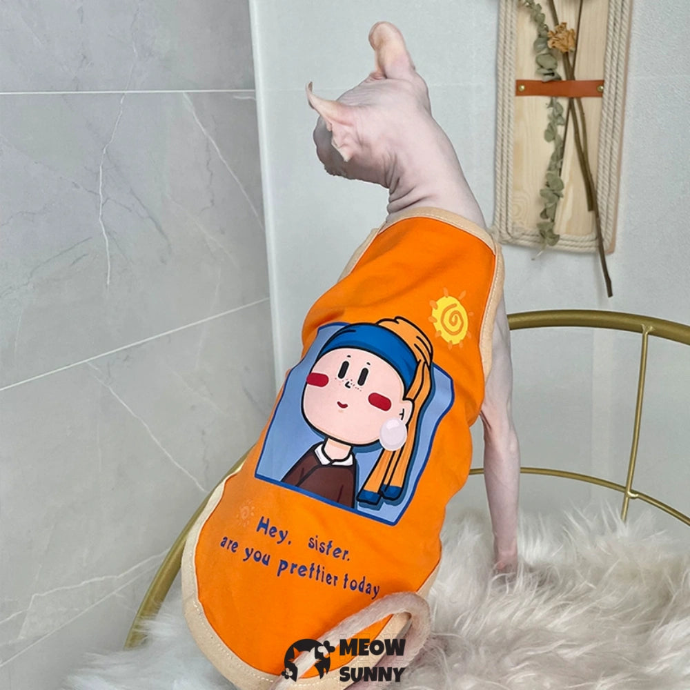 Sphynx Cat Breathable Stretchy Cat Summer Fashion vest,Oil painting