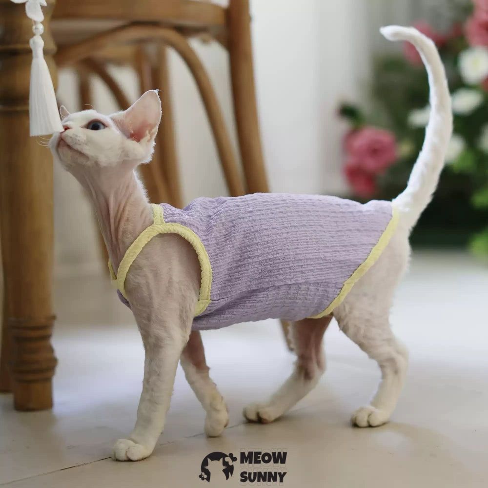 Sphynx Cat Breathable Stretchy Cat Summer Vest,Purple Striped
