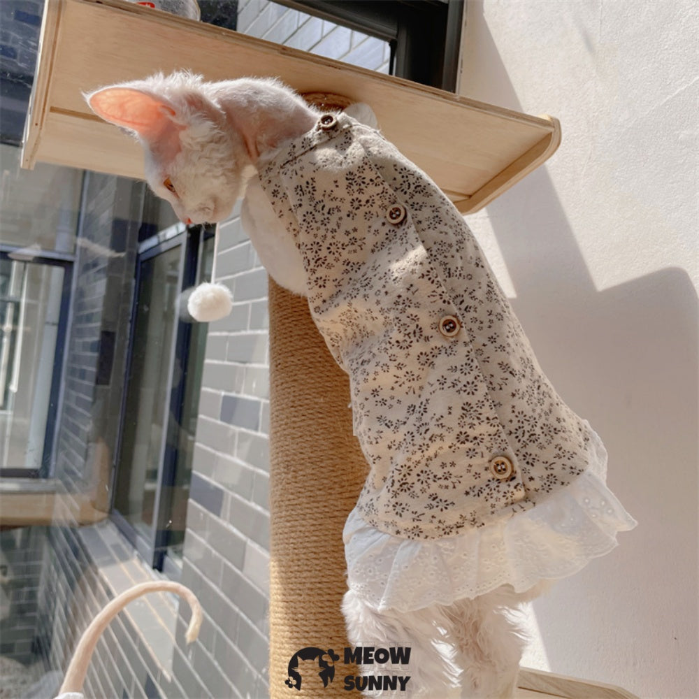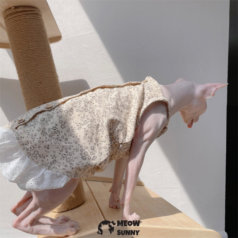 Hairless Cat T-Shirts Breathable Summer Cotton Retro Shirts Button Closure Turn Down Collar Floral Print Cat Clothes Vest Pajamas Apparel for Sphynx, Cornish Rex, Devon Rex, Peterbald