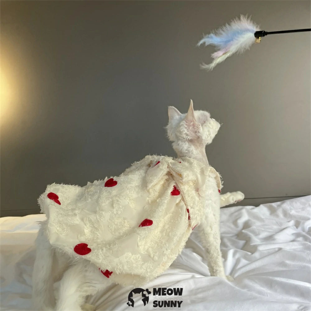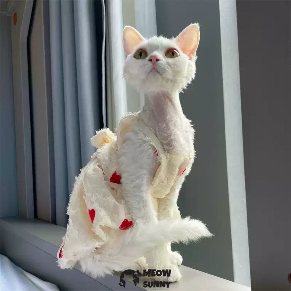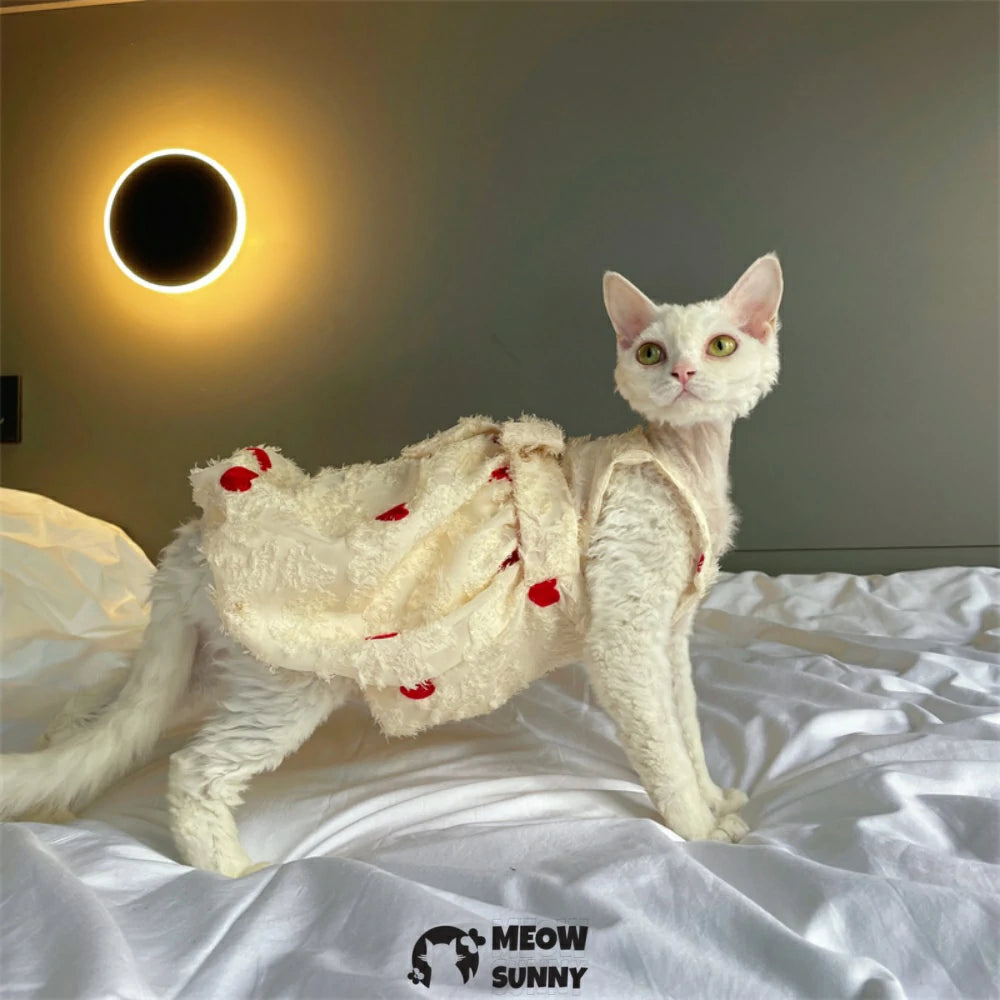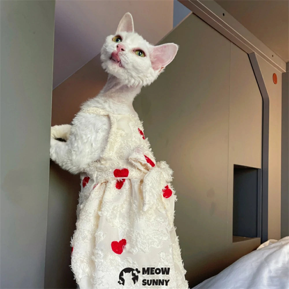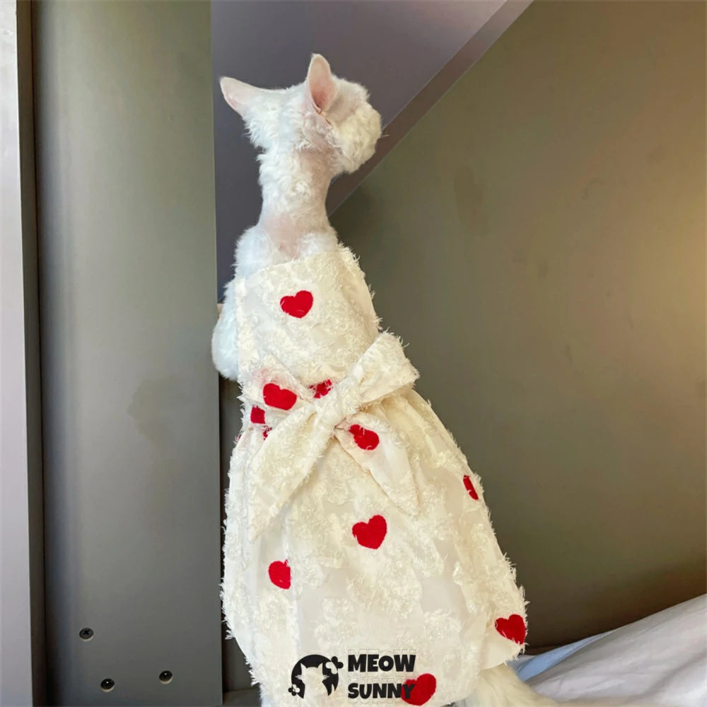 Hairless Cat Clothes - Breathable Cotton Summer Suspender Skirt Dress with Heart Print Elegant Romantic Girly Soft Lace Princess Dress