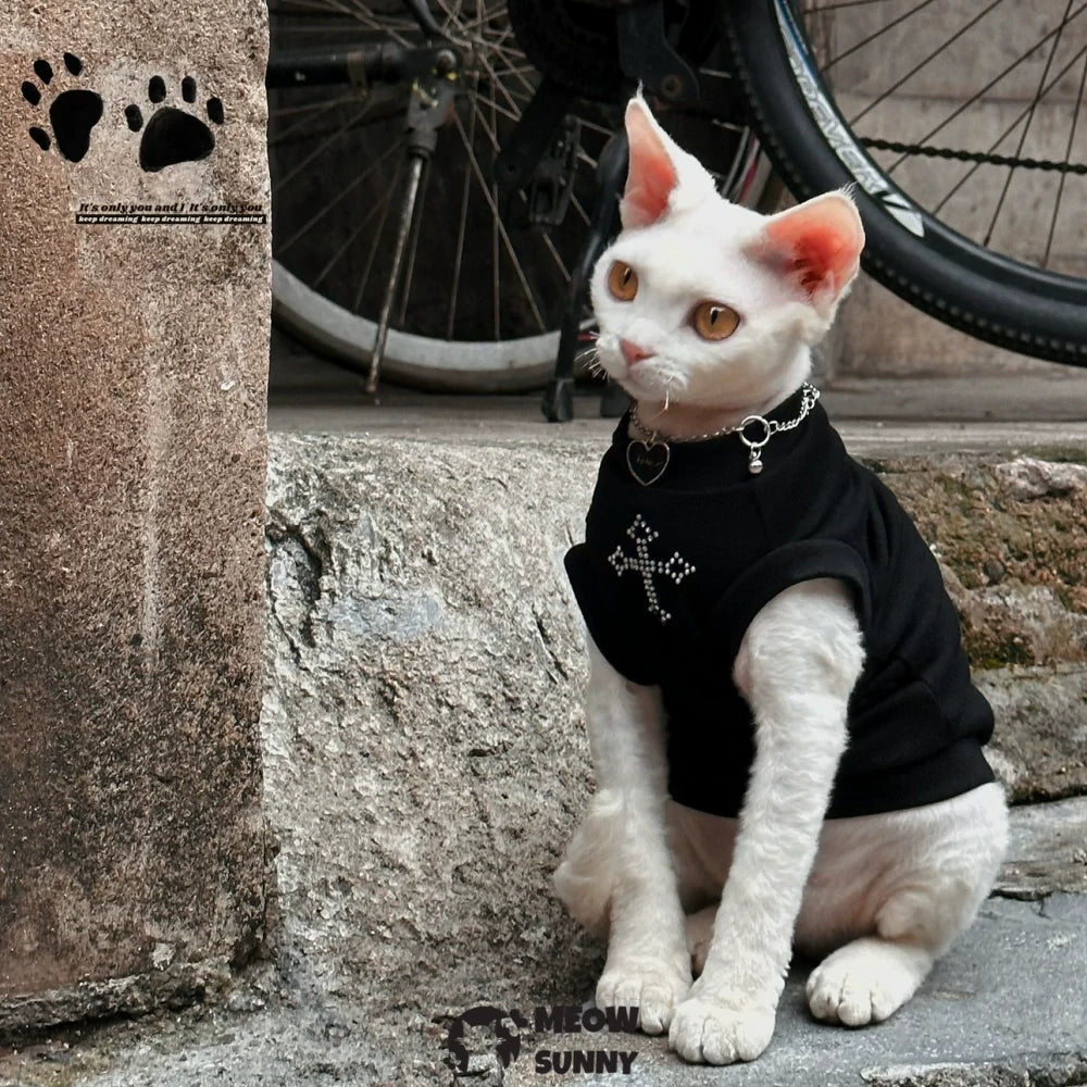 Sphinx Hairless Cat Summer Comfortable Breathable Black Cross T-shirt