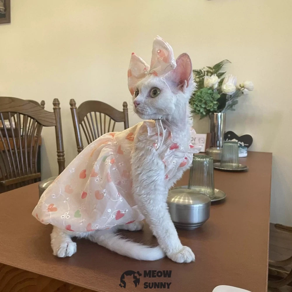 Keep your Sphynx cat stylish and comfy this summer with this light, breathable dress featuring a charming heart pattern. Designed to keep your hairless feline cool, it combines playful style with gentle fabric that’s perfect for warm days. Ideal for adding a cute touch to your cat’s wardrobe while ensuring comfort all season long.