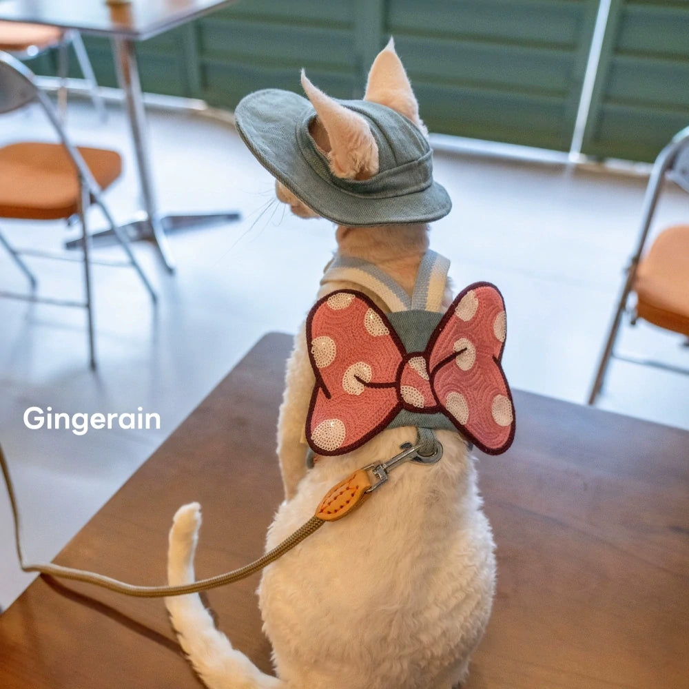 Dress your cat in adorable style with this Pink Polka Dot Big Bow Denim Chest Strap Set, featuring a cute matching hat. The bright polka dots and oversized bow add a playful touch, while the denim strap offers a comfortable and secure fit for your feline friend’s fun outings. Perfect for turning heads and capturing charming moments!