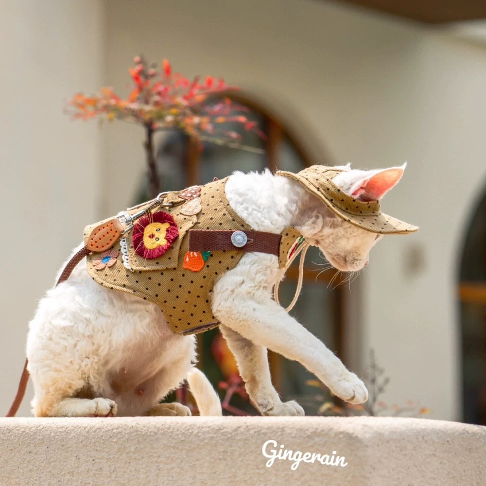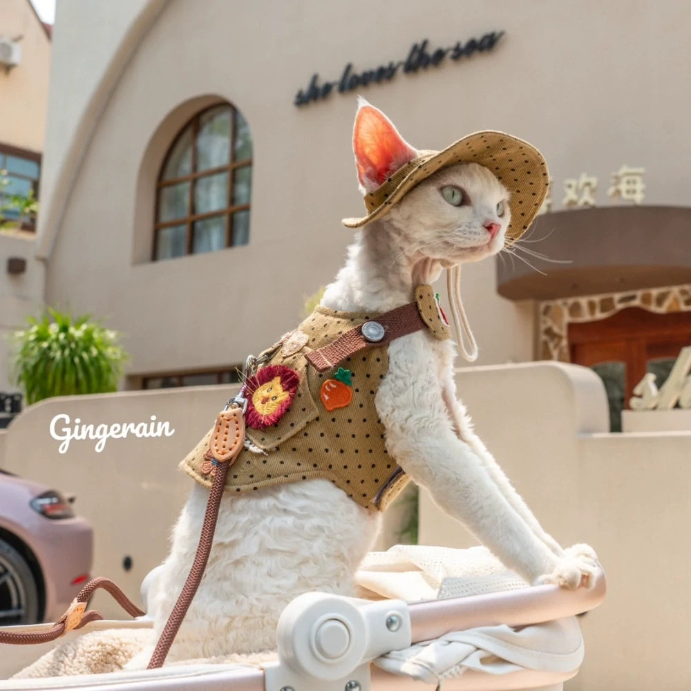 Let your cat strut in style with this playful brown cartoon cat chest strap set, complete with a matching hat. Comfortable and secure, it’s perfect for adding a touch of fun to your pet’s day while keeping them cozy and cute.