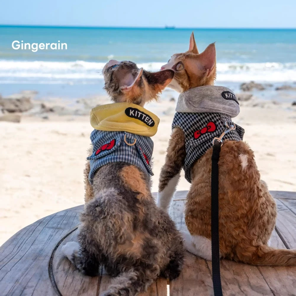 Keep your kitten cozy and secure with this playful cat harness and leash set featuring an anti-escape hoodie. Crafted from soft, breathable fabric, it ensures comfort while preventing sneaky escapes during outdoor adventures. Perfect for curious kittens ready to explore safely in style!
