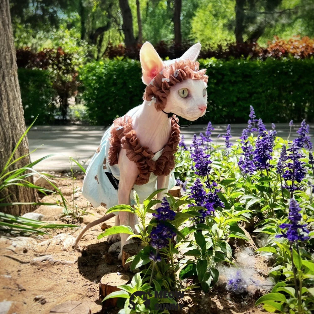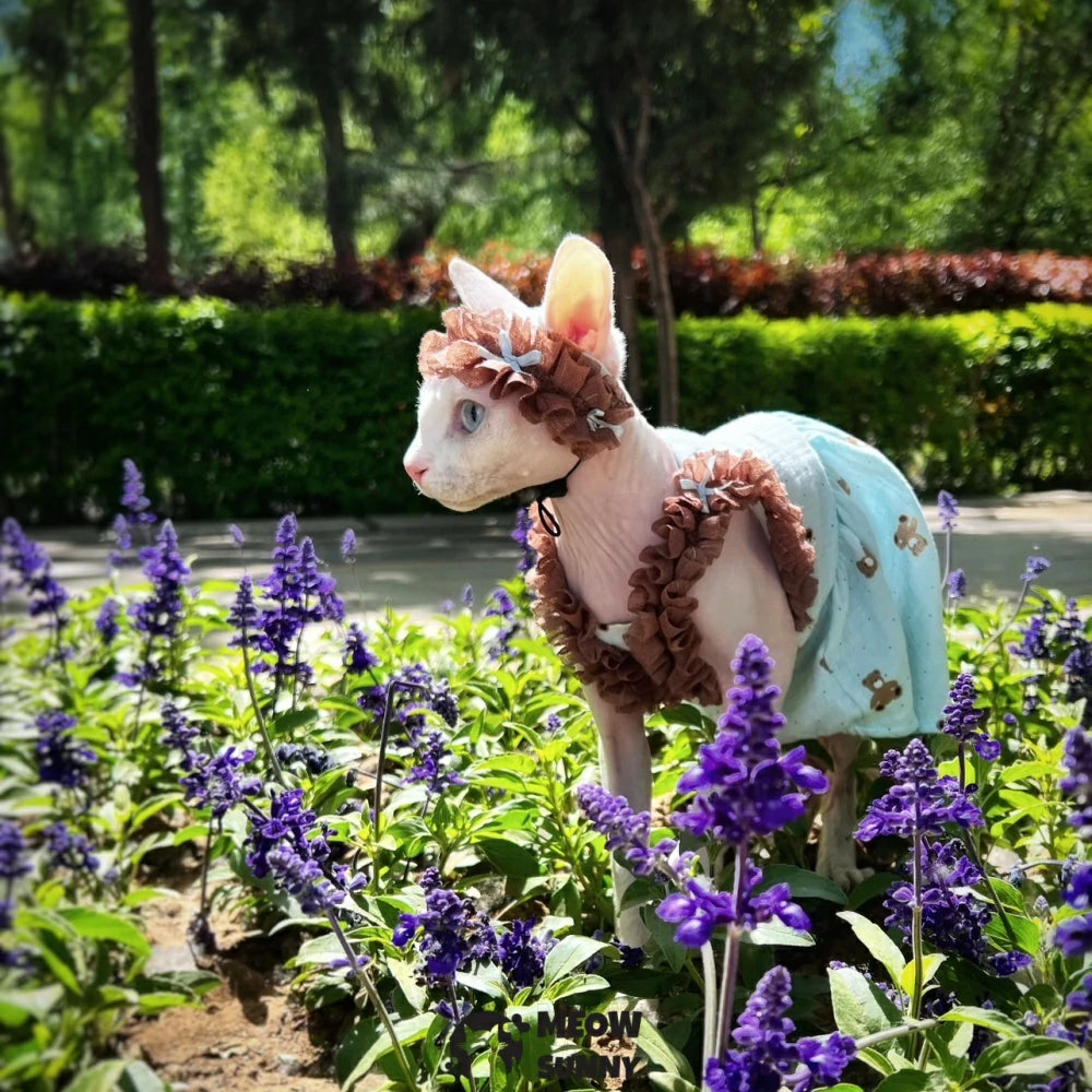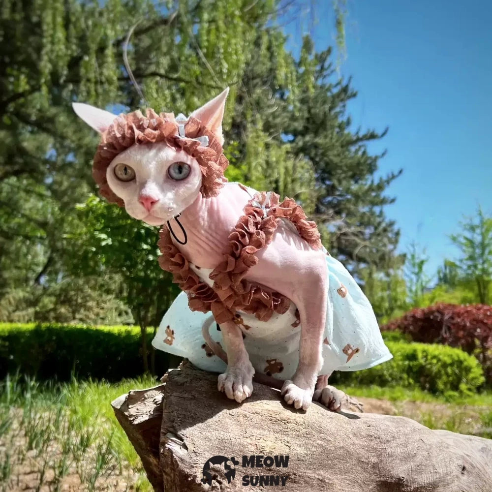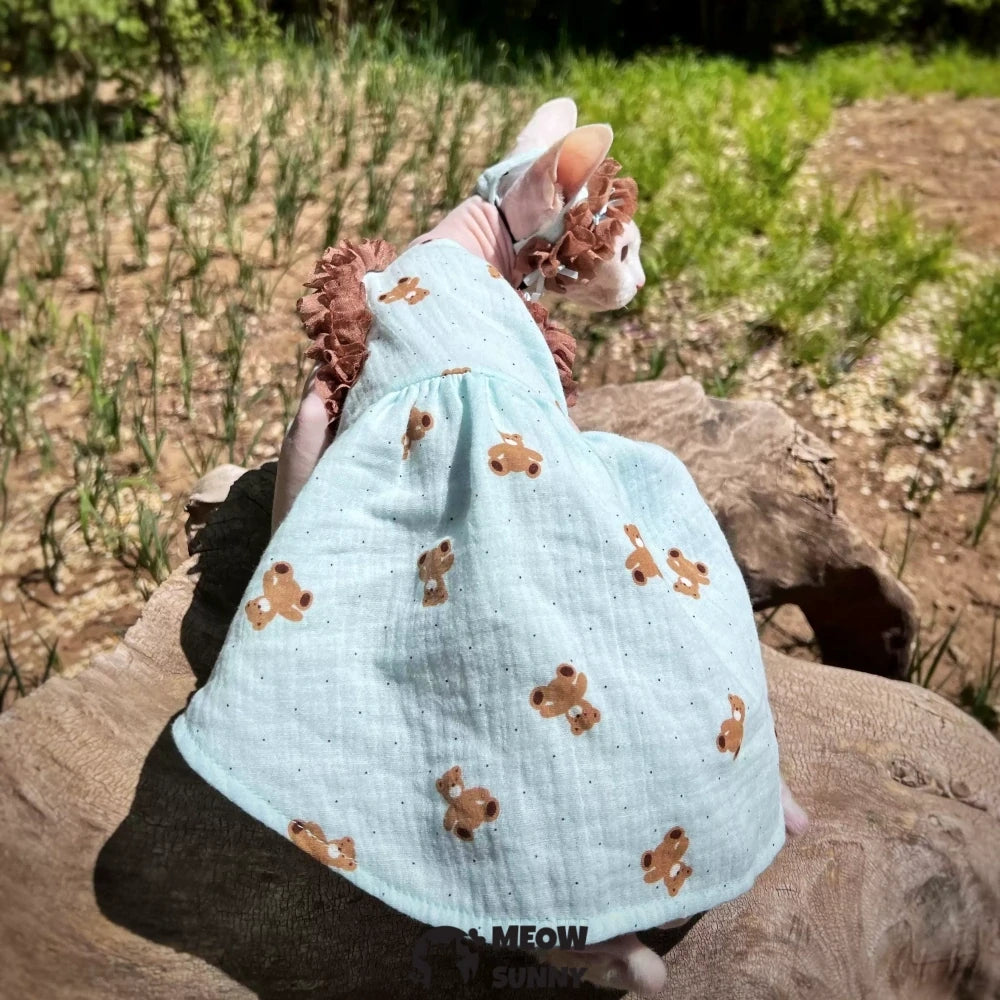 Dress your hairless cat in playful retro style with this soft cotton light blue skirt featuring a charming Devon curly cat double yarn design and cute bear accents. Lightweight and cozy, it’s perfect for adding a fun, comfy touch to your feline friend’s wardrobe.