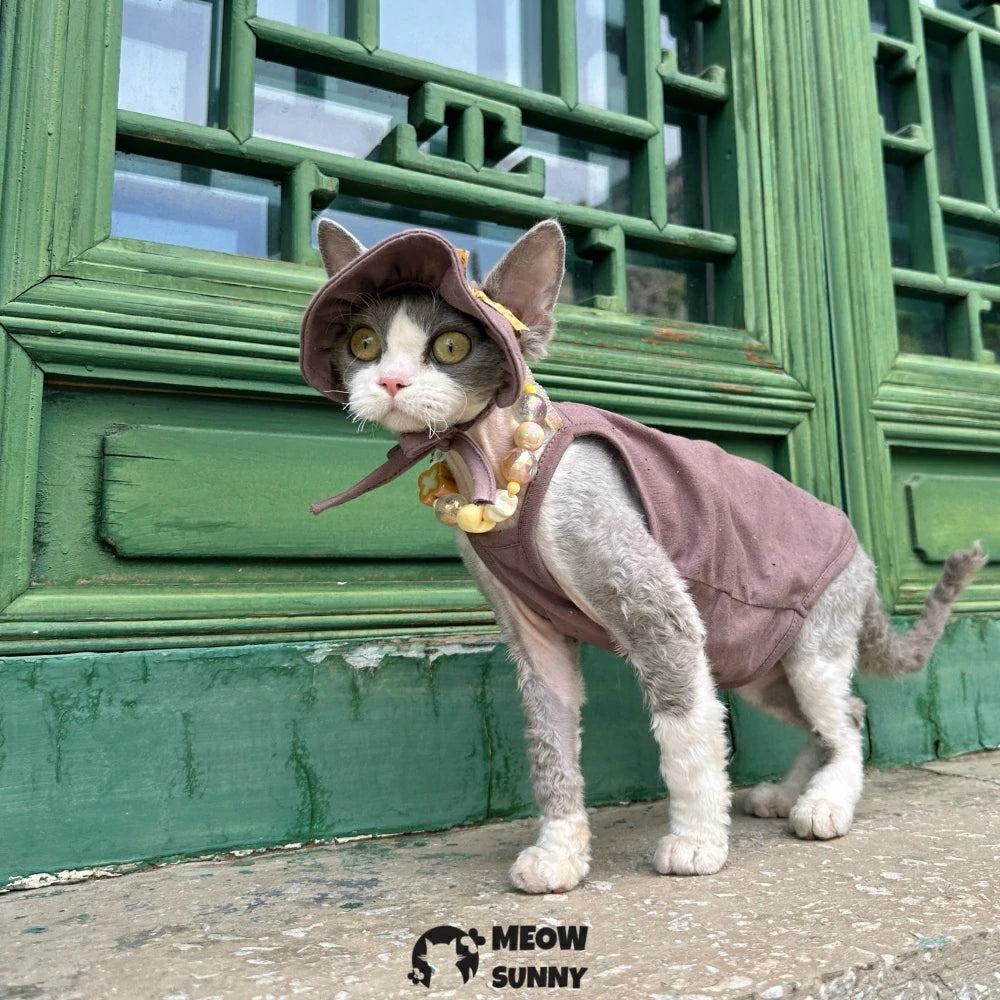 Keep your cat cool and charming this summer with soft, breathable pure cotton clothes featuring colorful suspenders and a cute sun hat. Lightweight and playful, this outfit adds a splash of fun while protecting your feline friend during sunny adventures.