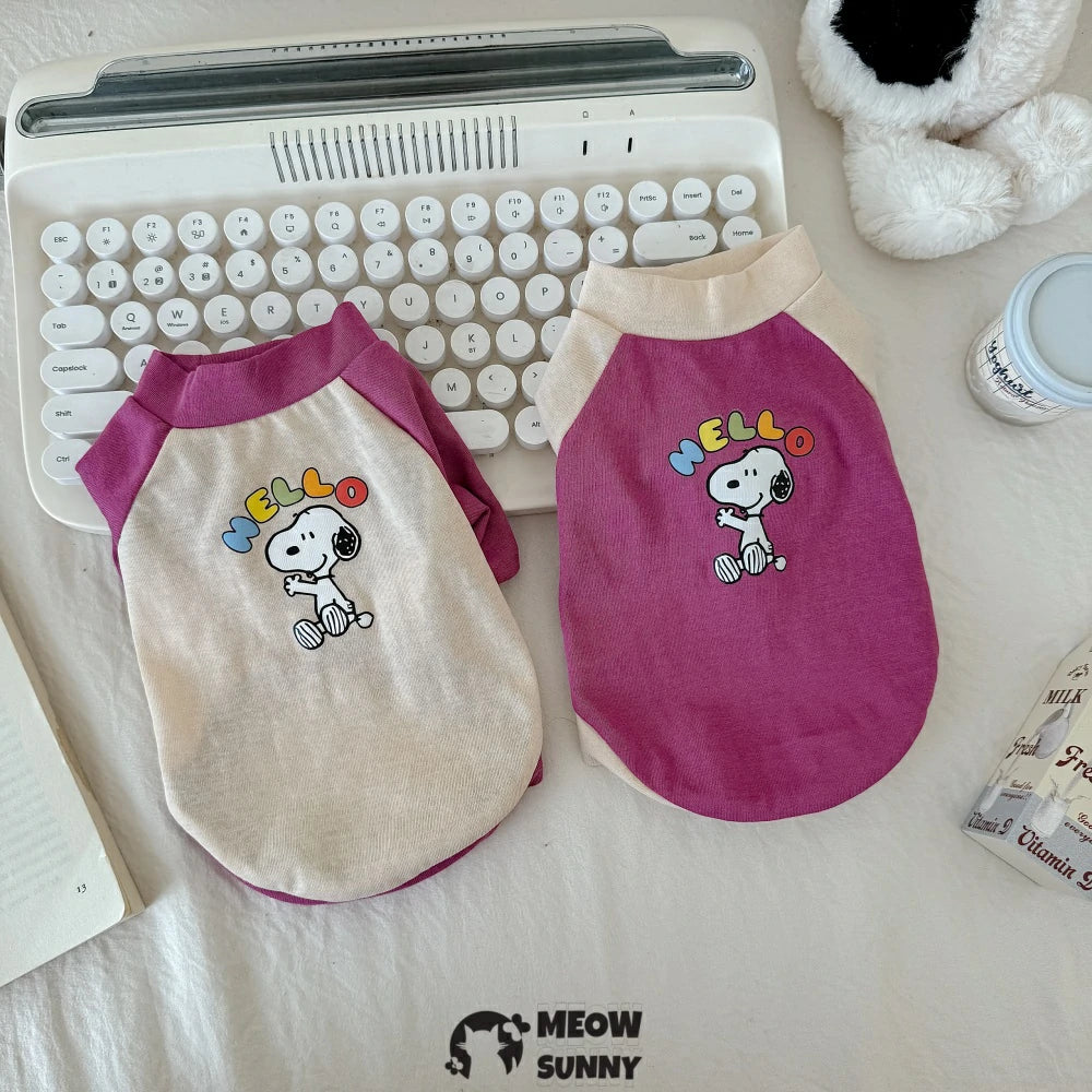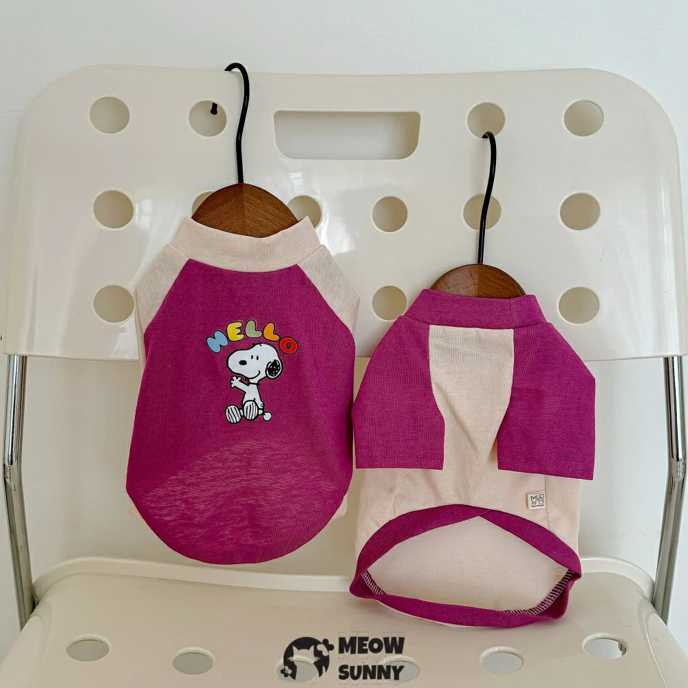 Devon cat clothes pure cotton contrast color stitching print T-shirt