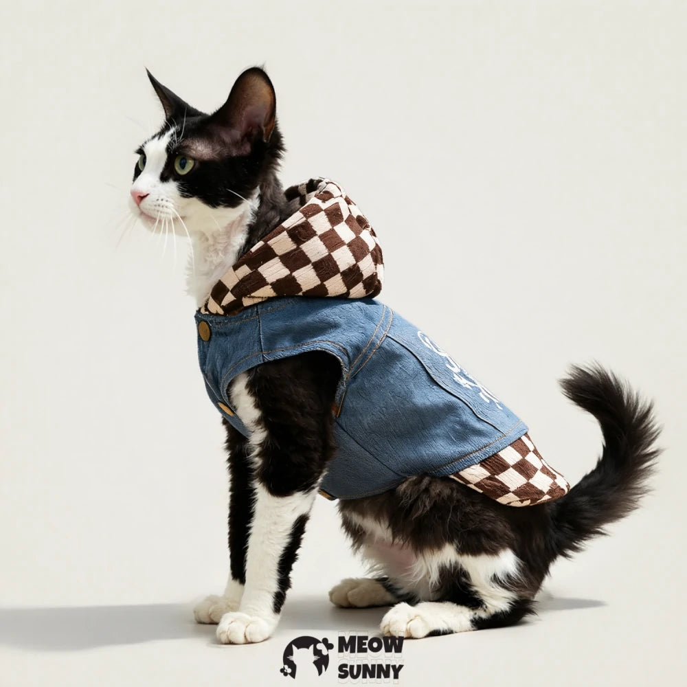 Winter warm and anti-shedding plaid hooded vest, cute cat clothes.