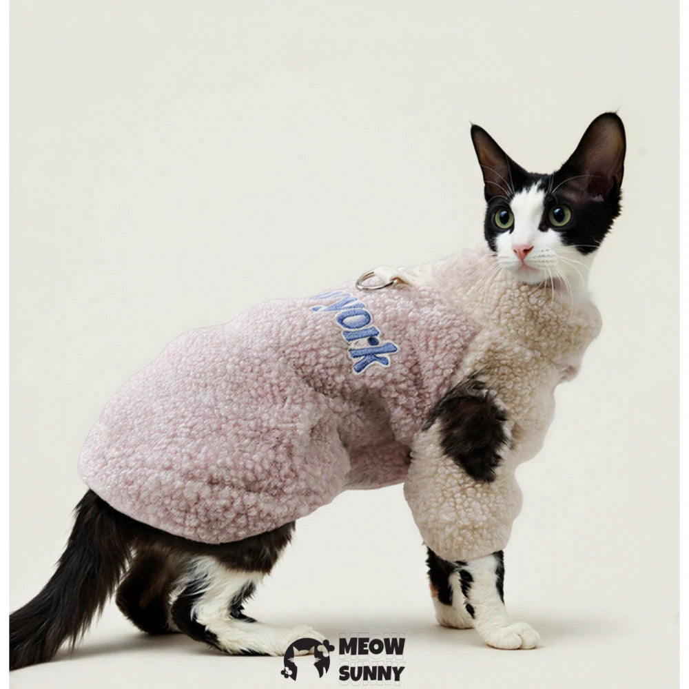 Keep your feline friend cozy and stylish with this plush cat hoodie! Crafted from thickened cotton with a soft fleece lining, it provides warmth and comfort during chilly days. The built-in leash attachment makes outdoor adventures safer and easier to manage. Perfect for cats who love snuggling up or exploring the world in comfort. Your kitty will be the cutest on the block!