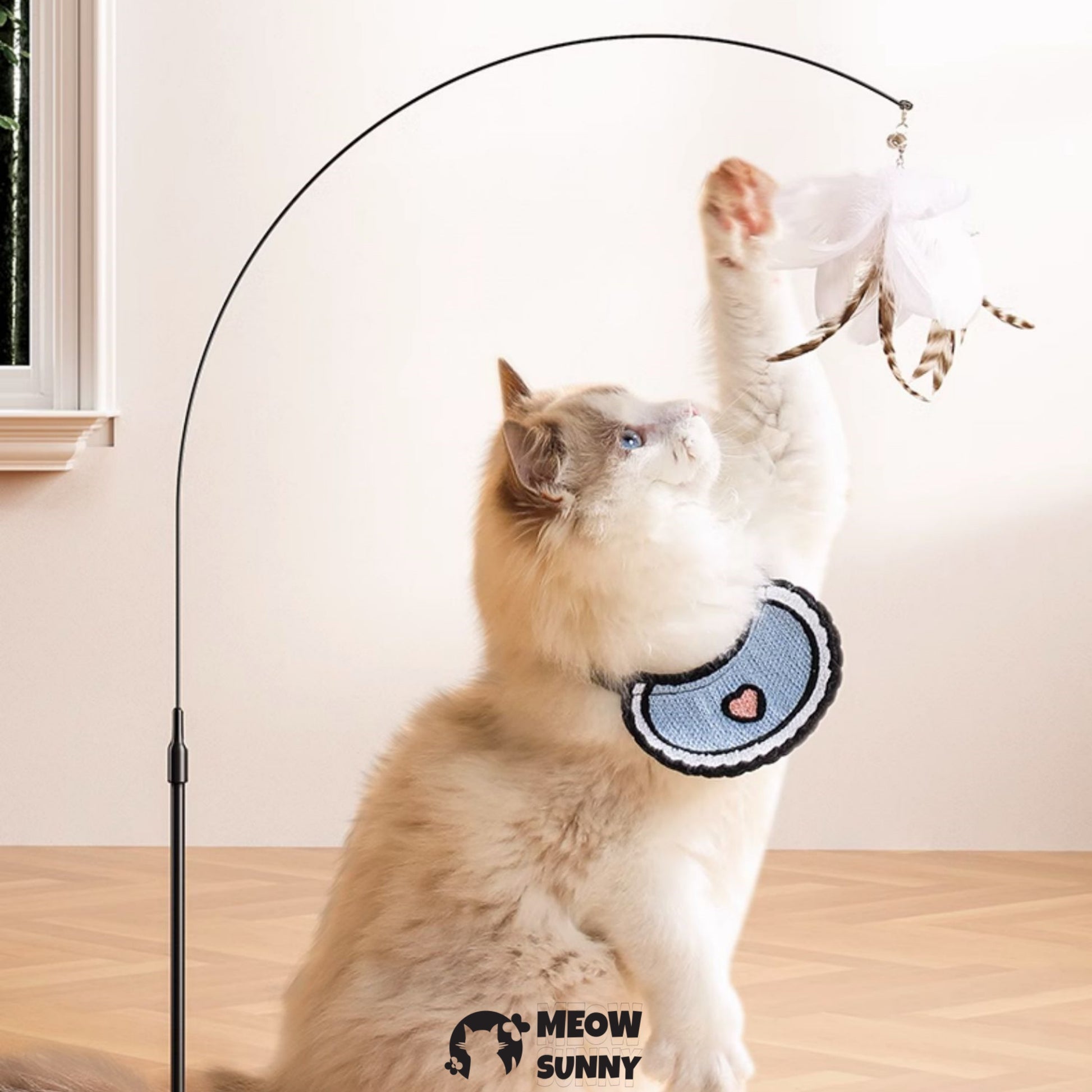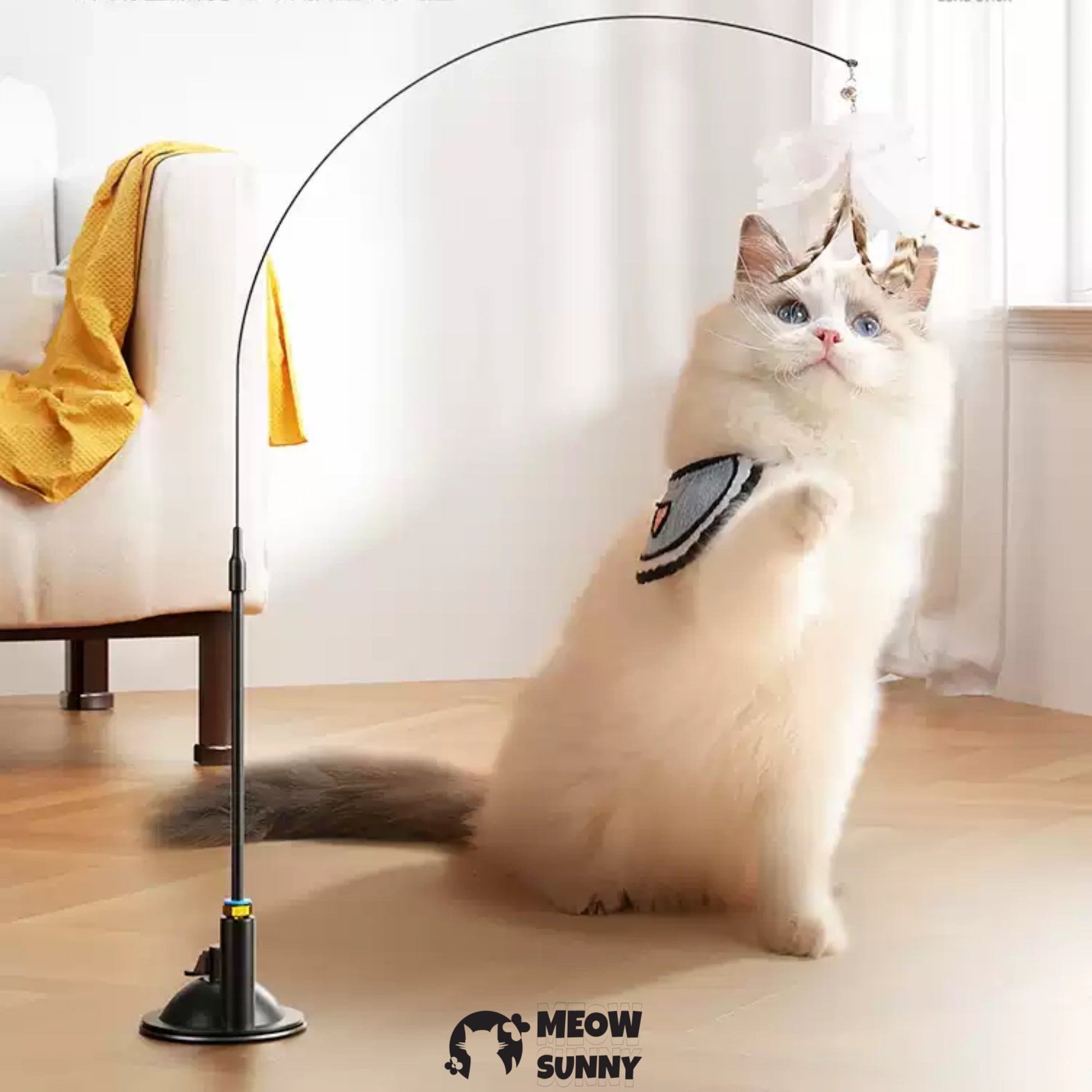 My rambunctious and high energy kitty absolutely loves this toy! Most toys I’ve purchased in the past provide short moments of interest but then she soon loses her attention to them. However this toy she plays with for a long time. It actually wears her out from all the swatting and catching the toy bird. The way the toy is designed is that it suctions to the hard floor surface very easily and the bird is clipped onto the end of a bendable wire inserted into the base. This toy comes with multiple birds you can easily switch out. There’s a little jingle bell on each bird that adds to the fun playtime. I highly recommend this product!