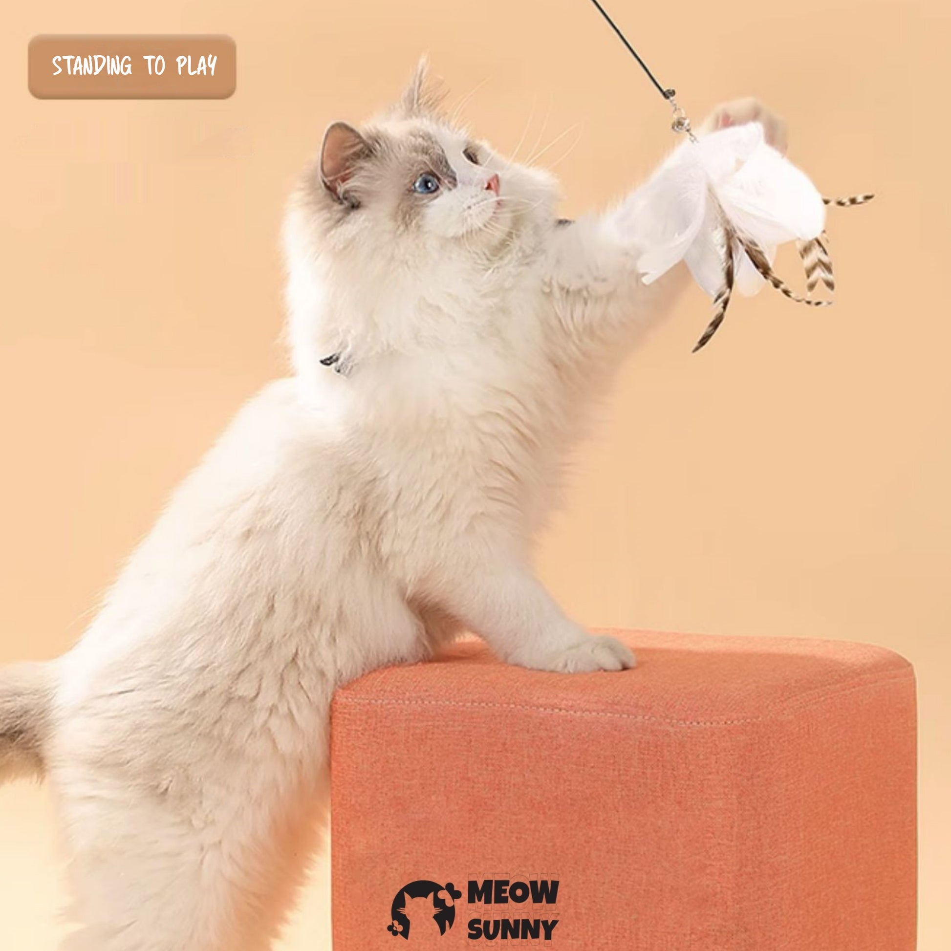 Interactive Bird Simulation Cat Toy Set, Interactive Cat Toys for Indoor Cats, Cat Feather Toy, Self-Holding Suction Base, 4 Replacement Birds, Feathers & Bells, Realistic Bird Impression