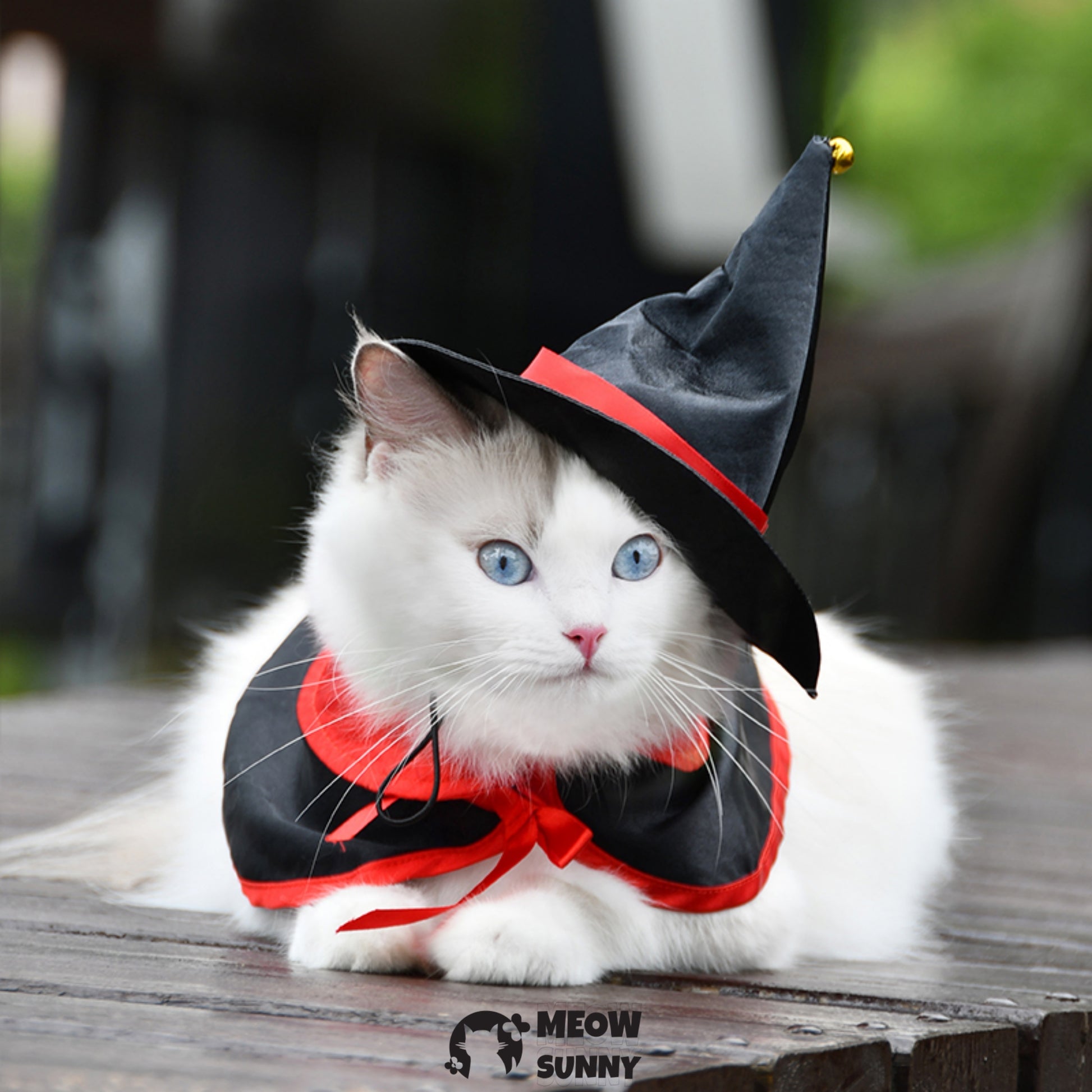 Halloween Pet Costume Cat Funny Wizard Cat Clothes Cloak and Hat