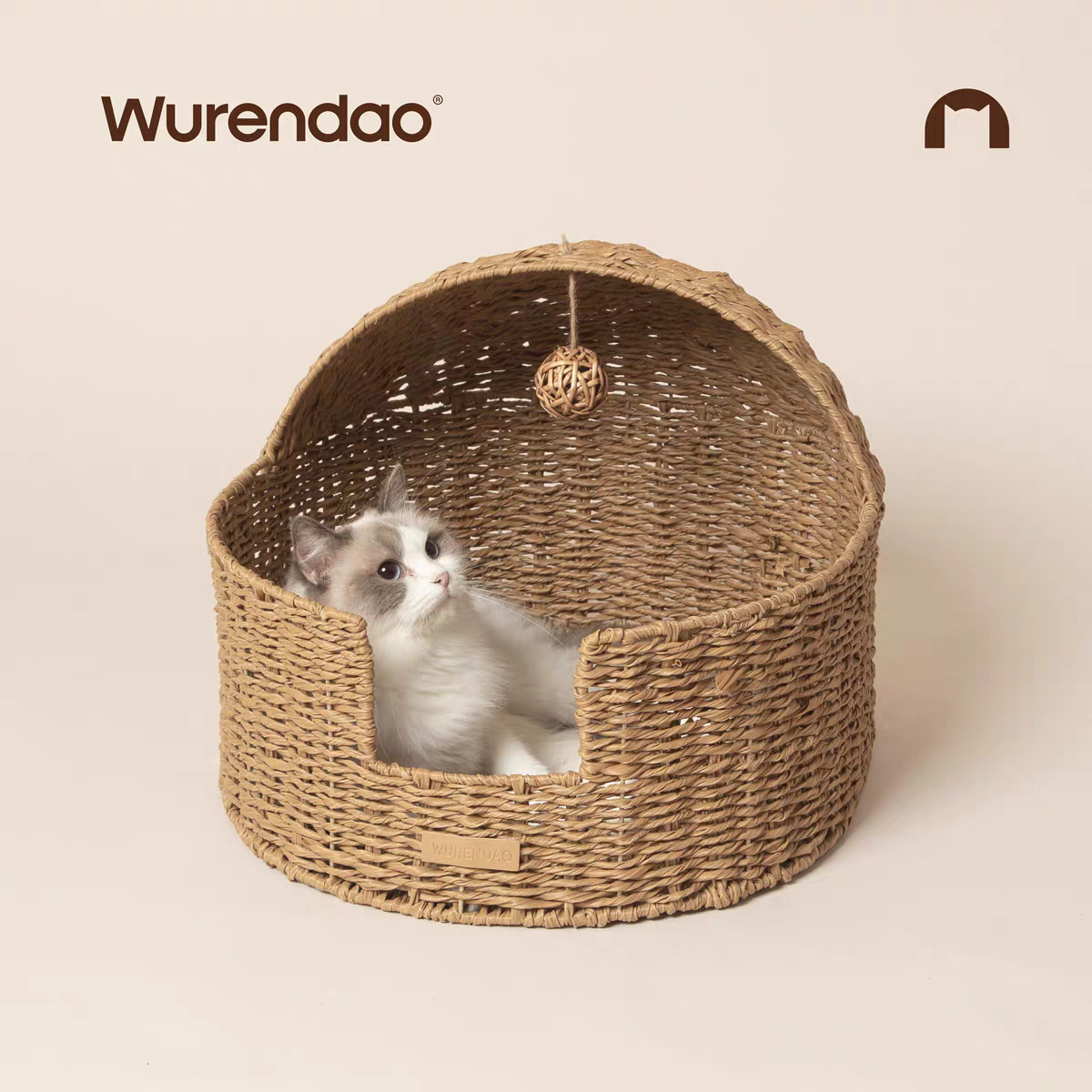 Pet Hemisphere with Trop Ball Toy Rattan Cat & Dog Bed