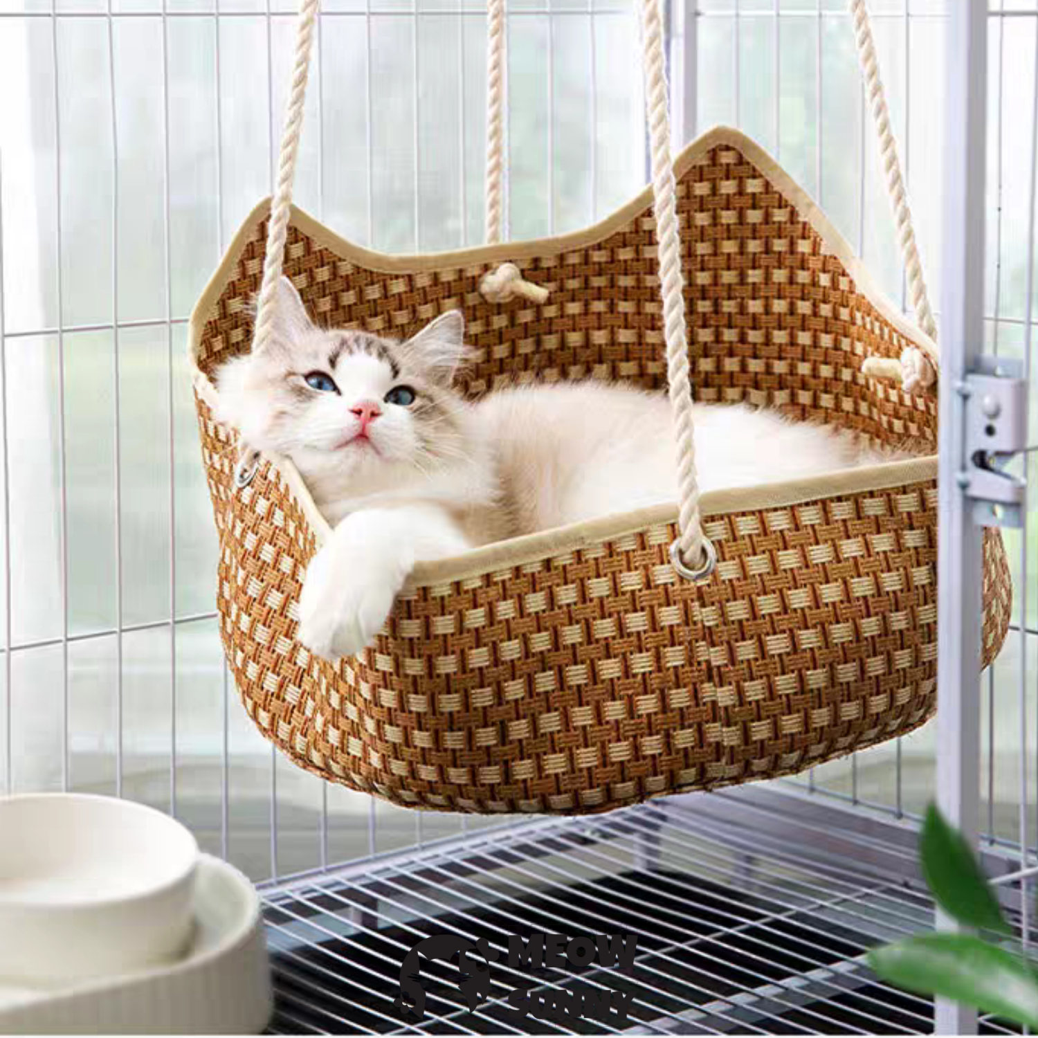 Cat hanging swing bed handmade rattan soft and cool