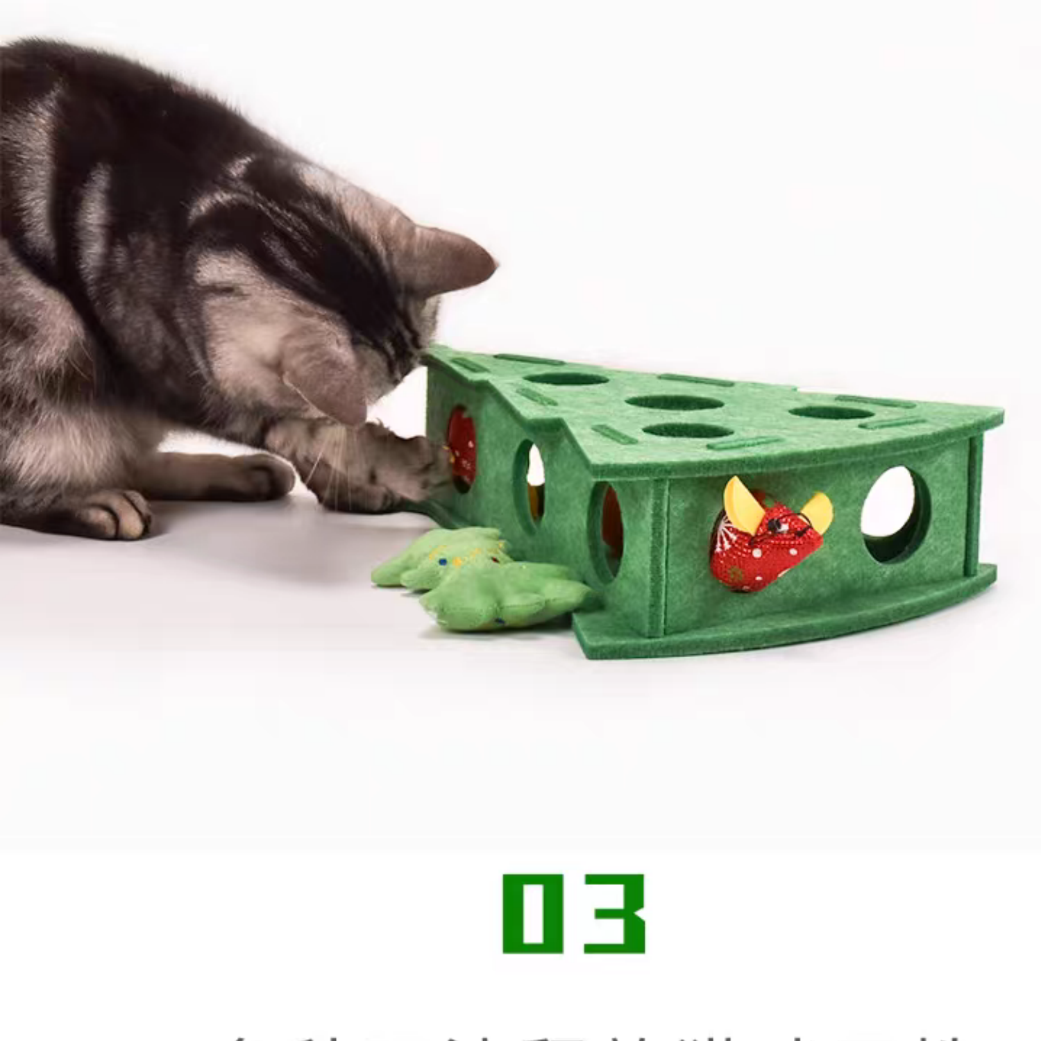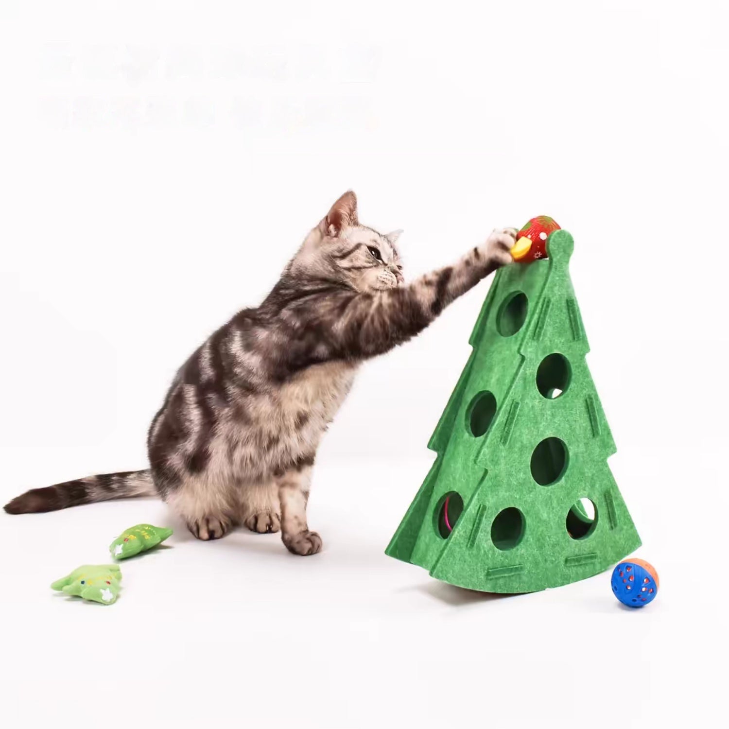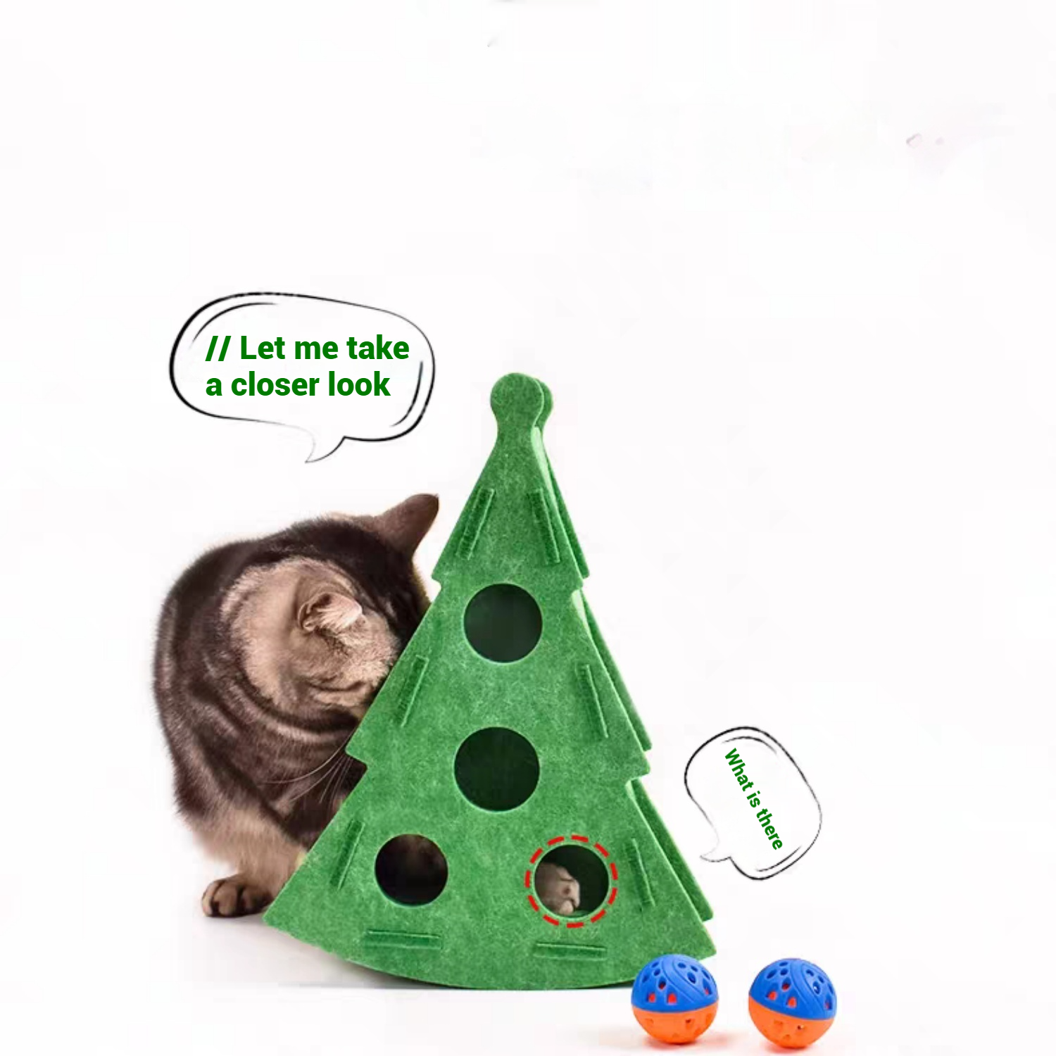 Felt Build Christmas Tree Hole Treat or Ball Dispenser Cat Toy