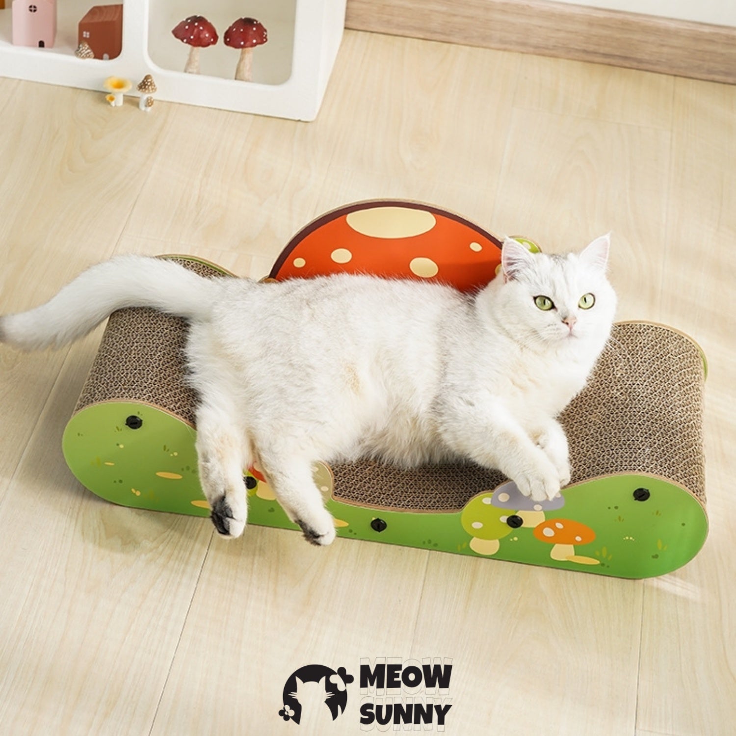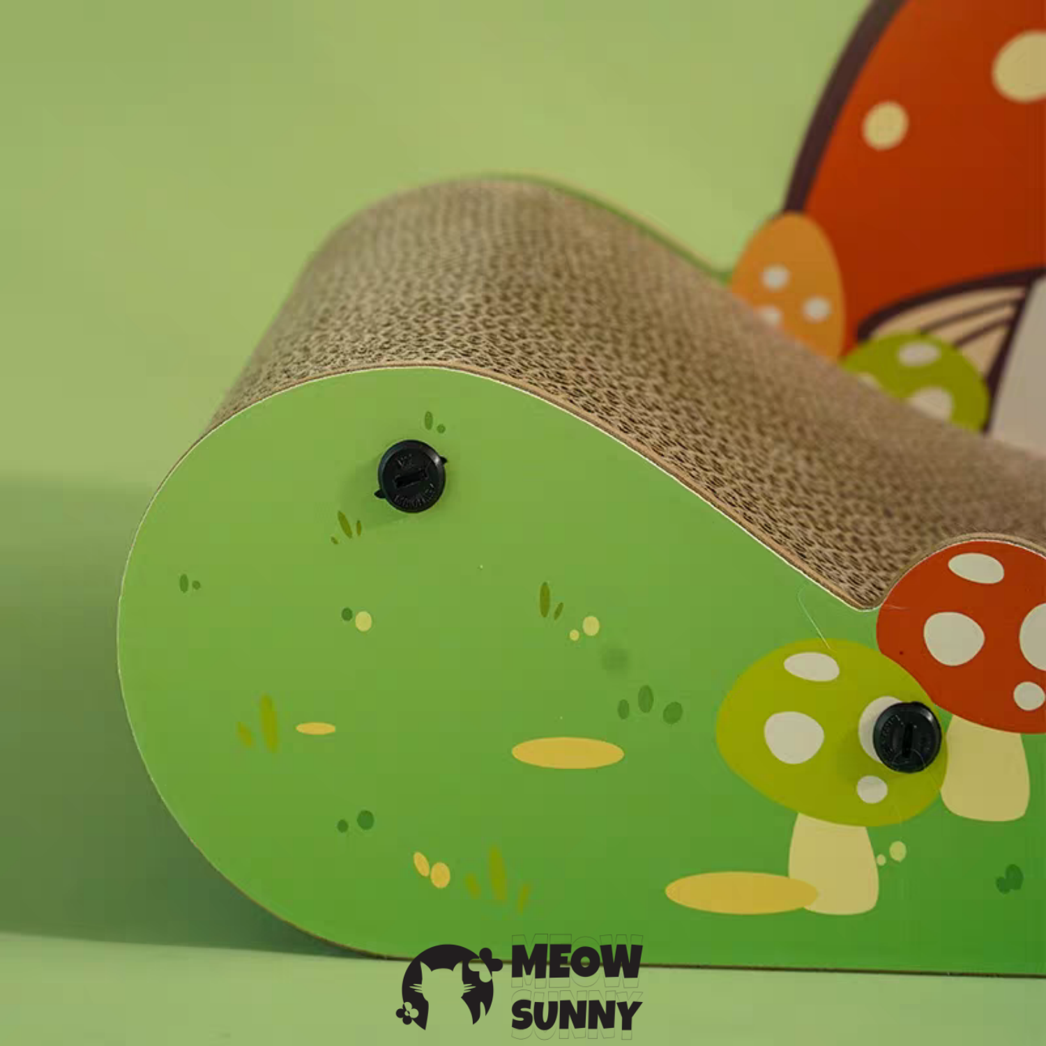 This 60cm cat scratching board is the perfect spot for your furry friend to sharpen their claws. Made with durable grass material, it features a fun mushroom design in playful green. Give your cat the gift of scratching pleasure (and save your furniture) with this quirky board.