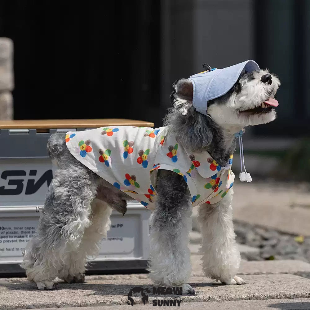 Hawaiian Beach Print Pet Dog T-Shirts for Summer with hat
