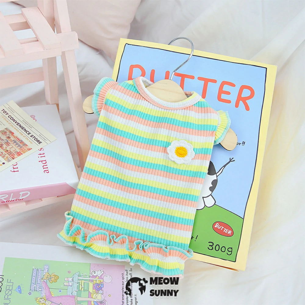 Dog Summer Clothes Puppy Sleeveless Striped Vest T-Shirt Pet Tutu Skirt Cat Dresses Suitable for Small Medium Dog