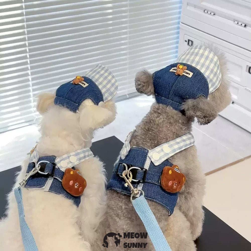 Plush dog striped clothes Teddy Bichon Pomeranian traction vest