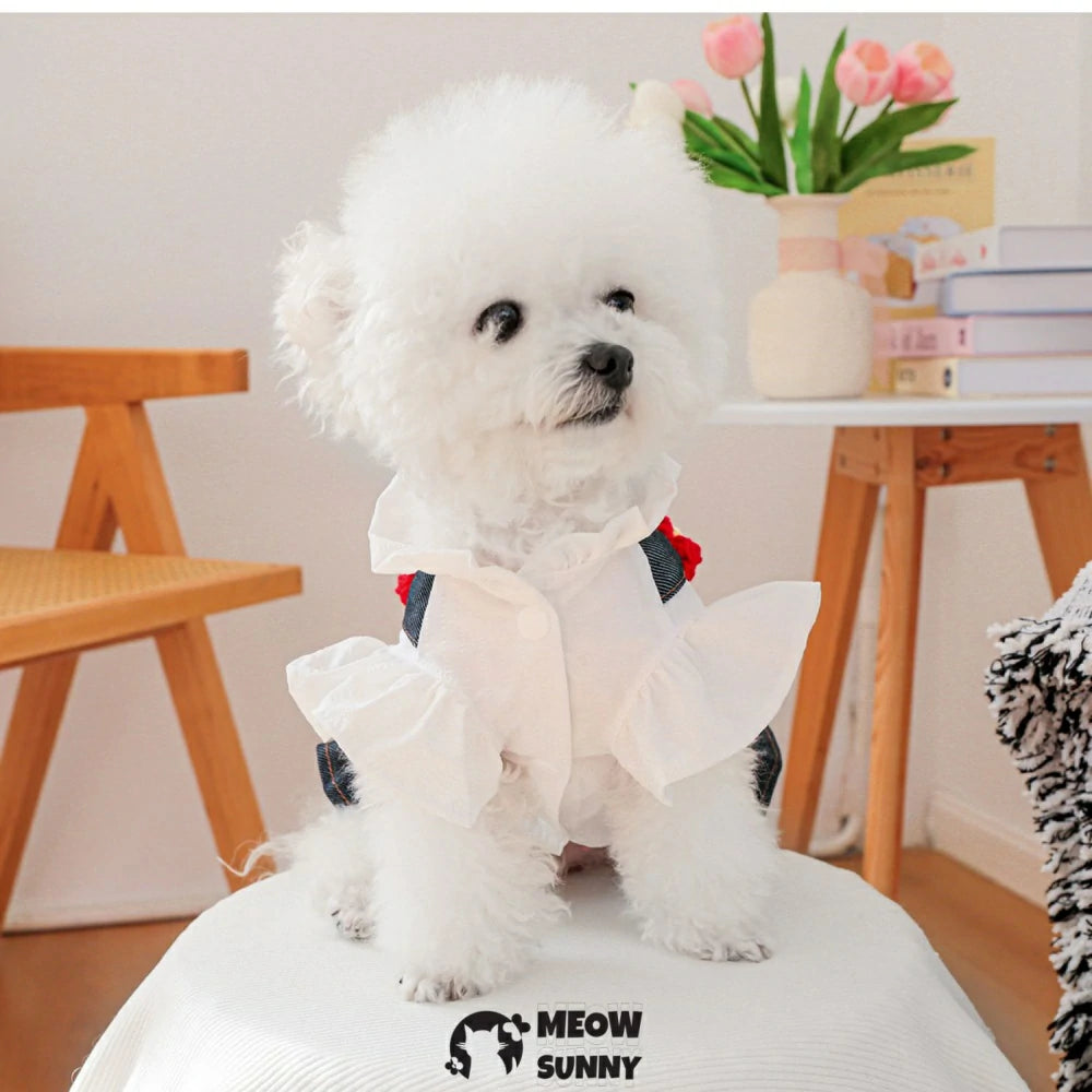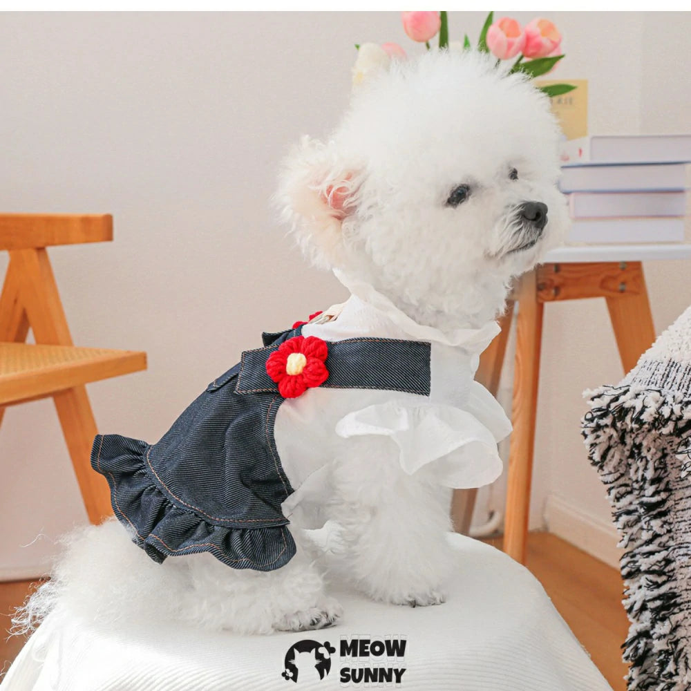Add a dash of charm to your pup’s wardrobe with these playful Little Red Flower Overalls. Made with durable denim and featuring a cute skirt, they’re perfect for playful pups who love to explore in style. Fun, comfy, and full of personality, this outfit is tailored for endless tail-wagging adventures!