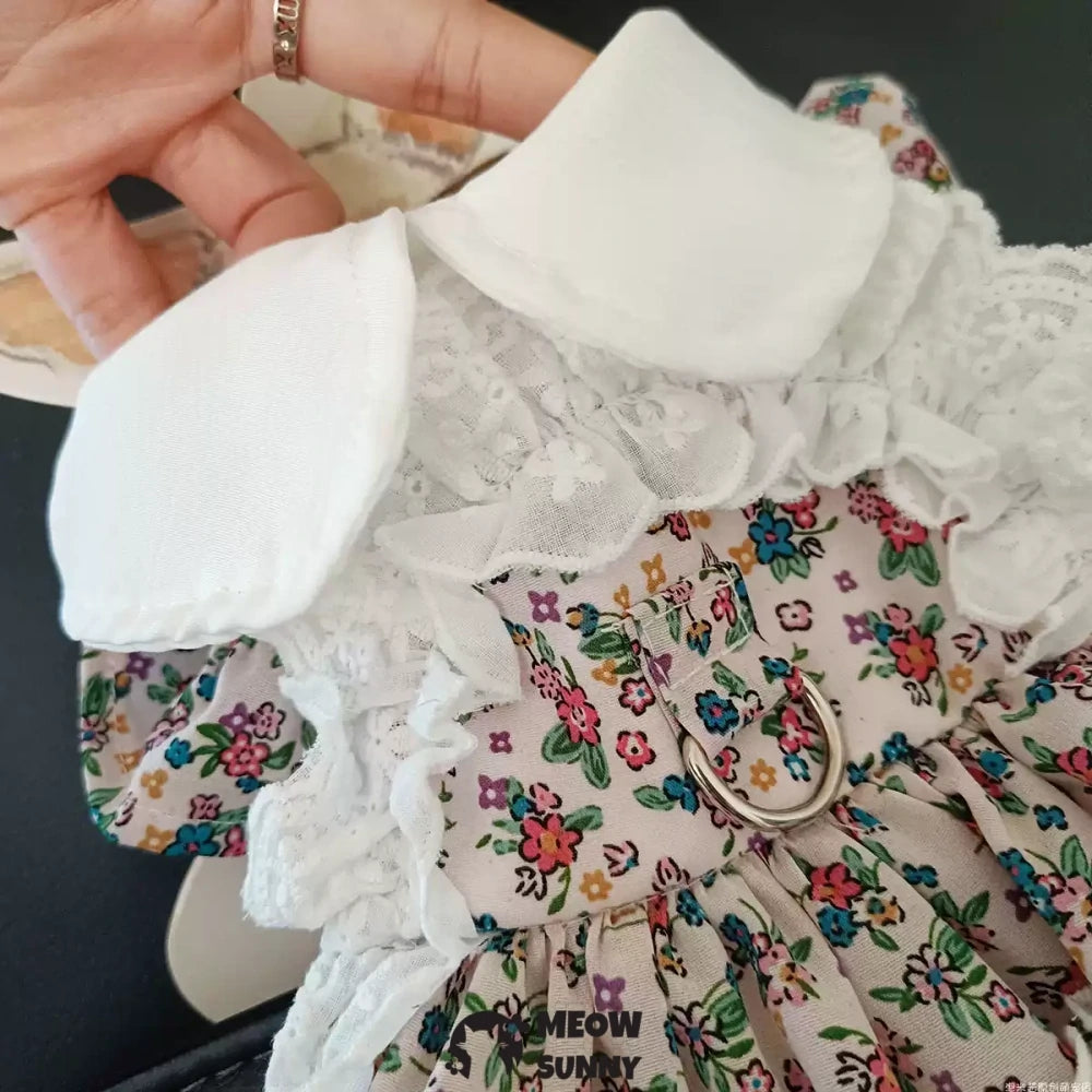 Small wild flower pet dog clothes Teddy summer skirt traction princess skirt