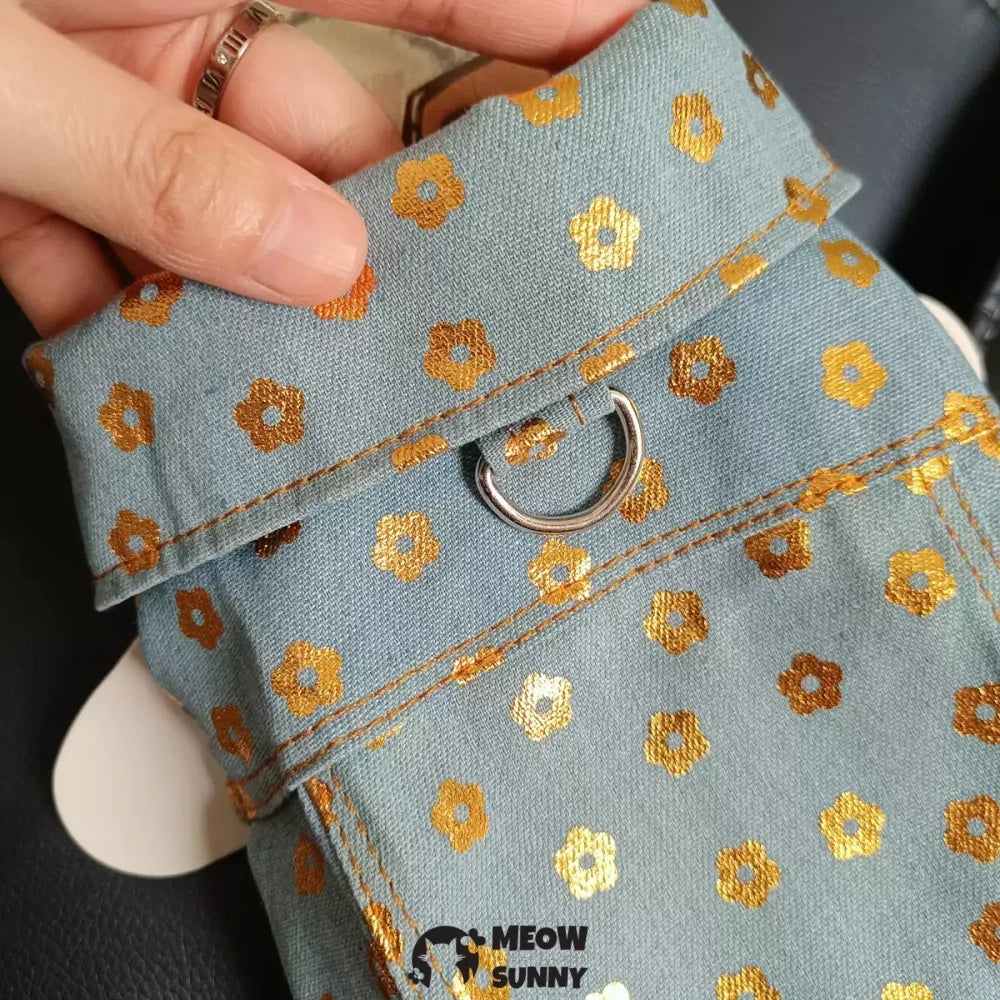 Add a touch of sparkle to your pup’s wardrobe with this playful denim coat featuring gold-stamped small flowers. Stylish and comfortable, this handsome coat keeps your dog looking sharp while adding a dash of fun flair to every outing. Perfect for pets who love to stand out with a bit of shimmer and charm!