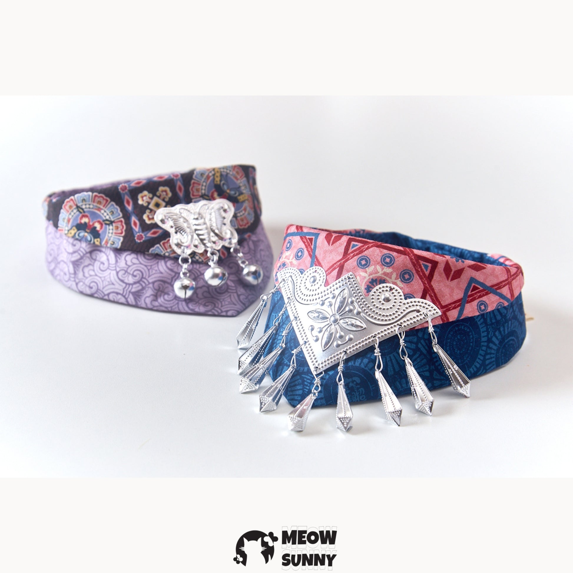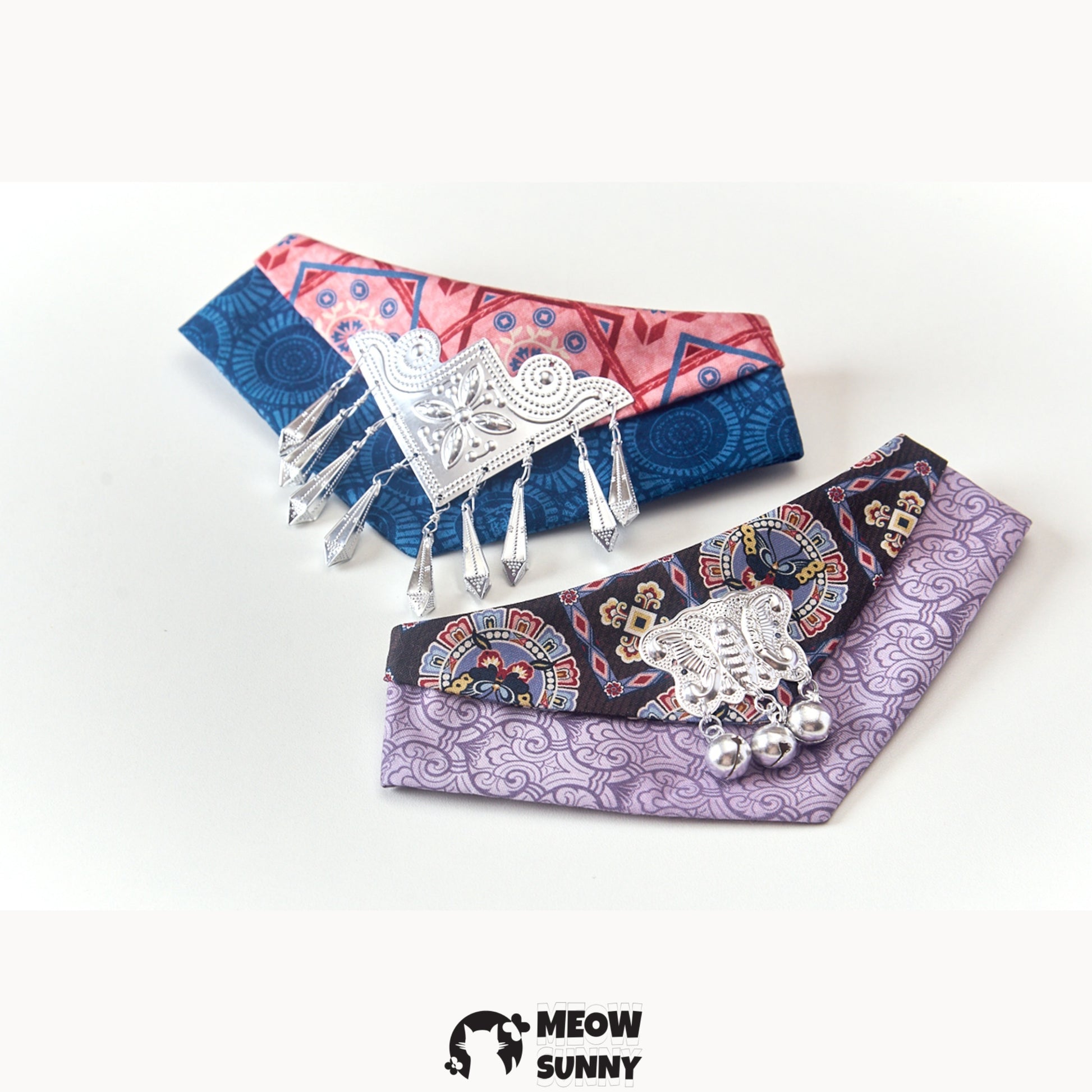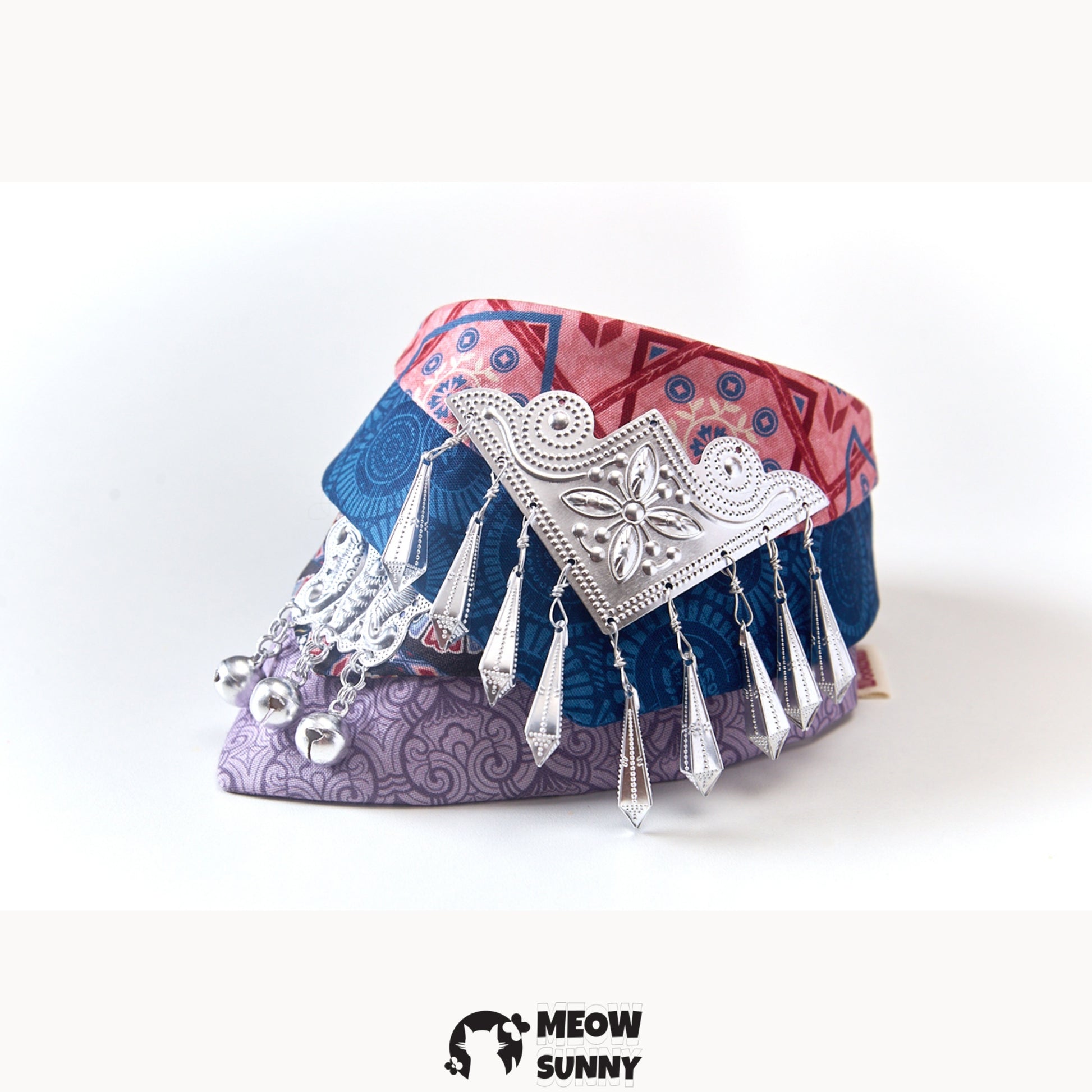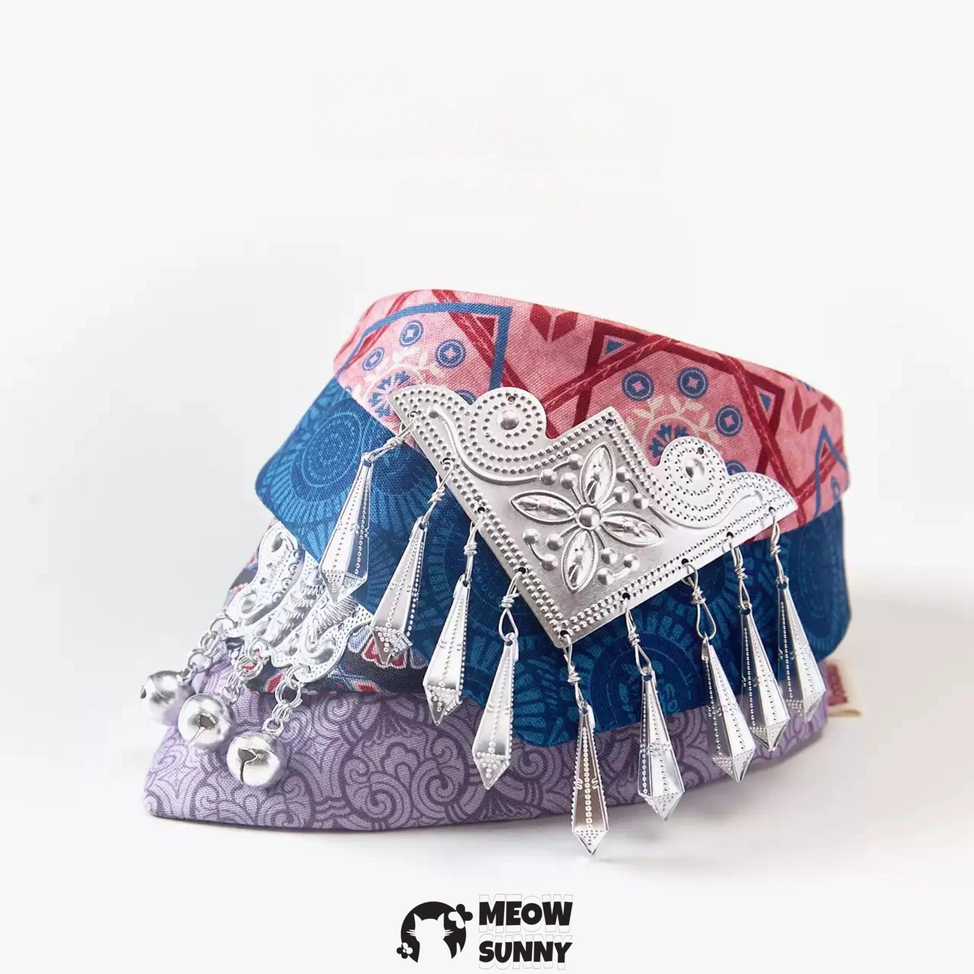 This Vintage Metallic Pet Cat & Dog Triangle Scarf Necklace is the purrfect accessory for your furry friend! With its unique triangle shape and metallic finish, this scarf necklace will add a touch of vintage charm to your pet's ensemble. It's a stylish and playful addition to any cat or dog's wardrobe!