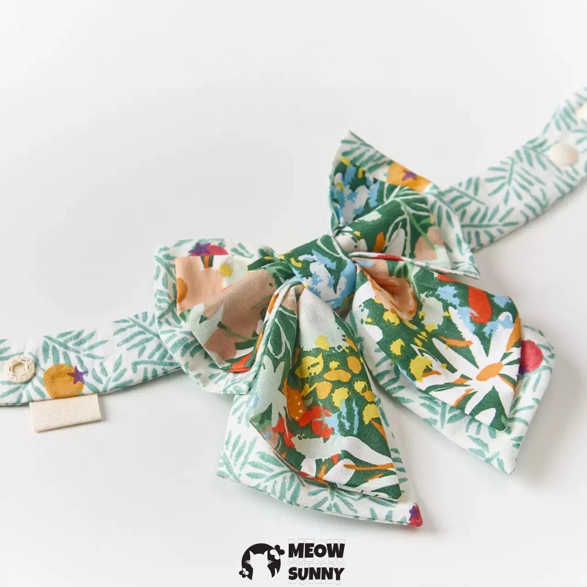 Butterfly and Flower Print Pet Cat & Dog Green Bowtie