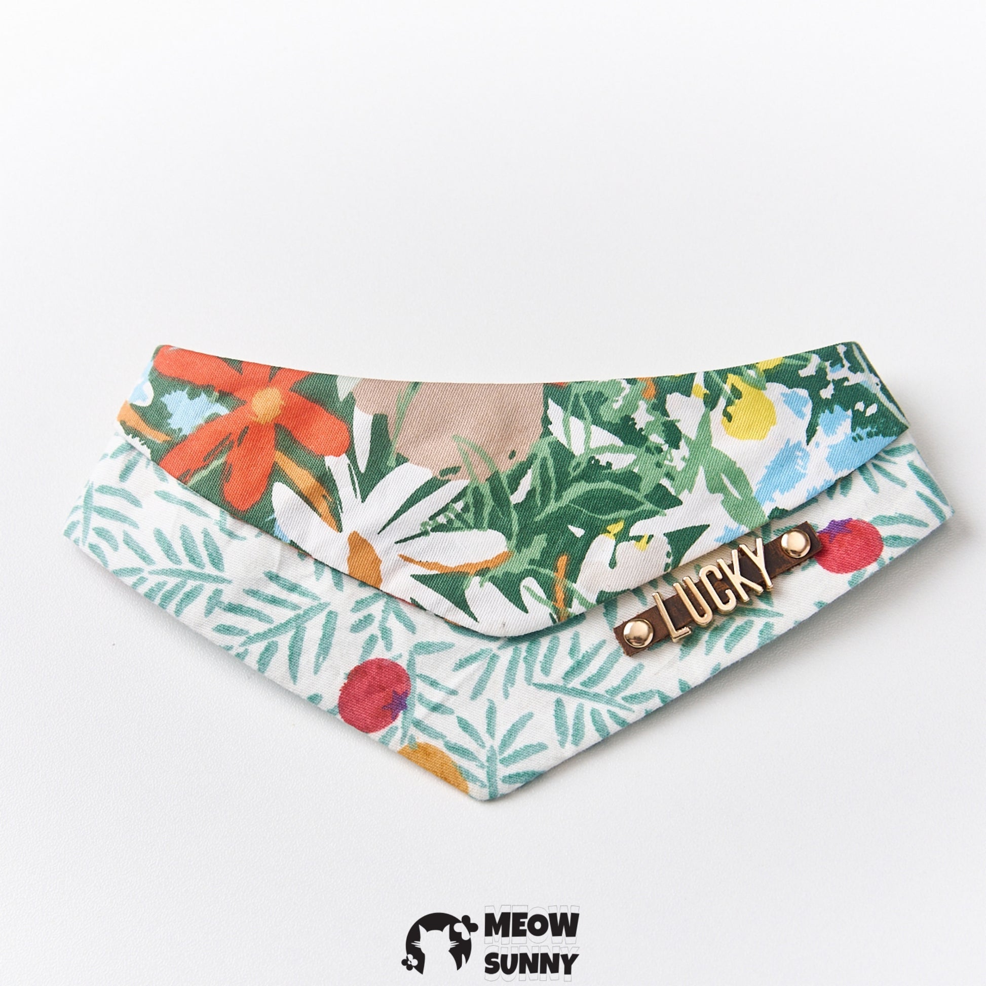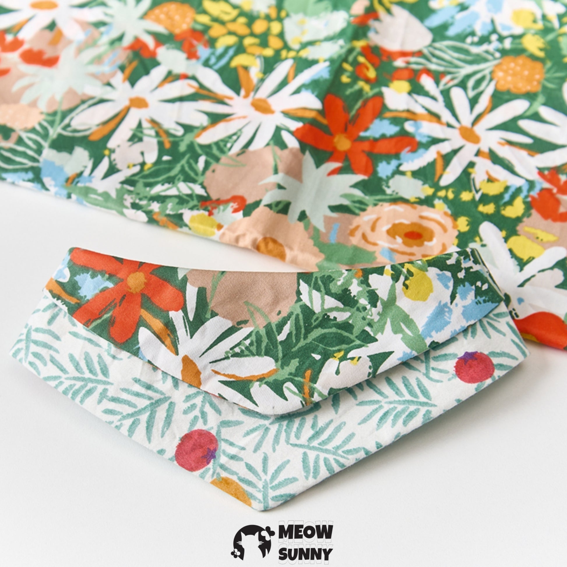 Daisy Print Green Pet Cat & Dog Triangular Bibs