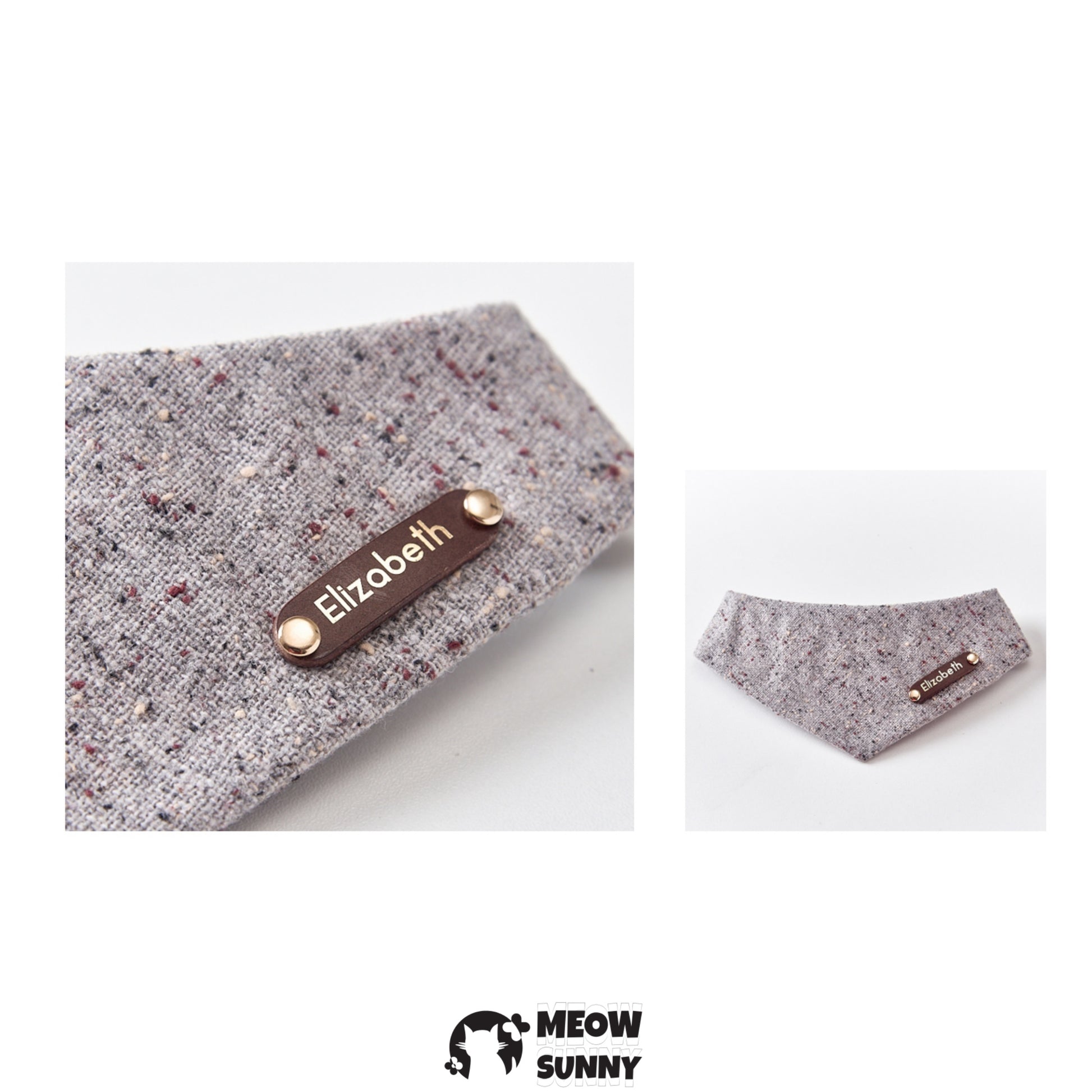 Wool Series Neutral Gray Pet Dot & Cat and Dog Triangle Bibs,Customizable Name