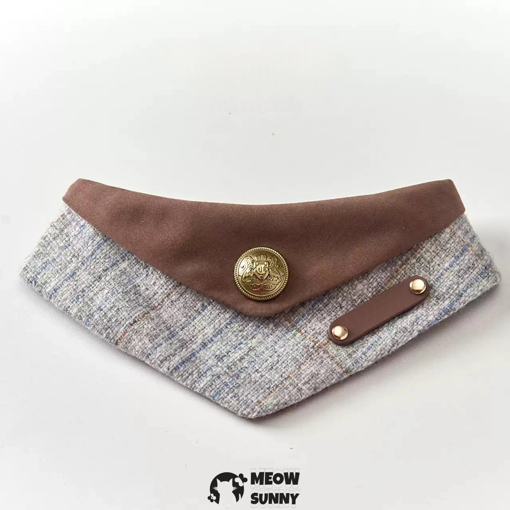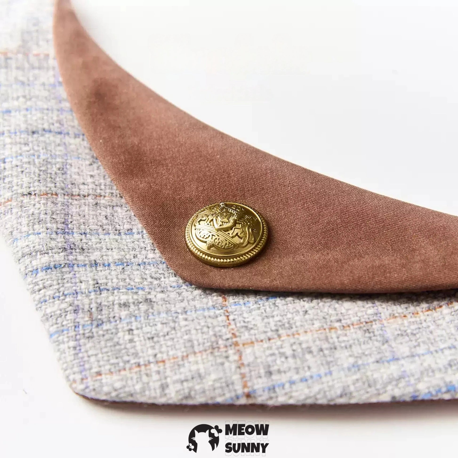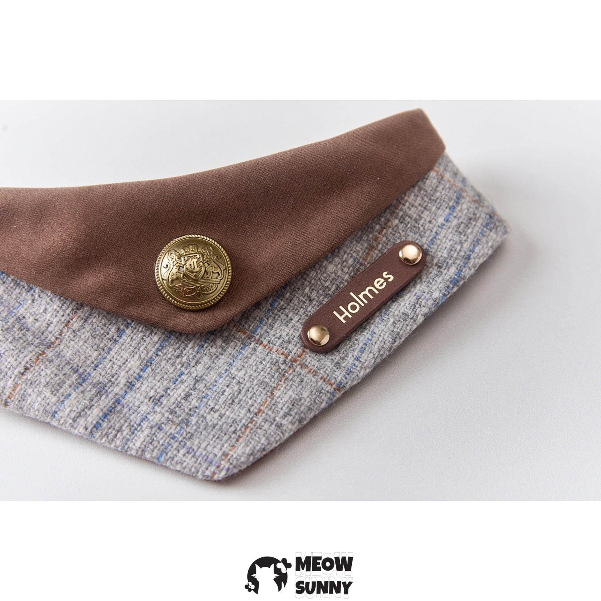 Brown Plaid Pet Cat & Dog Triangle Bib,Customizable Name