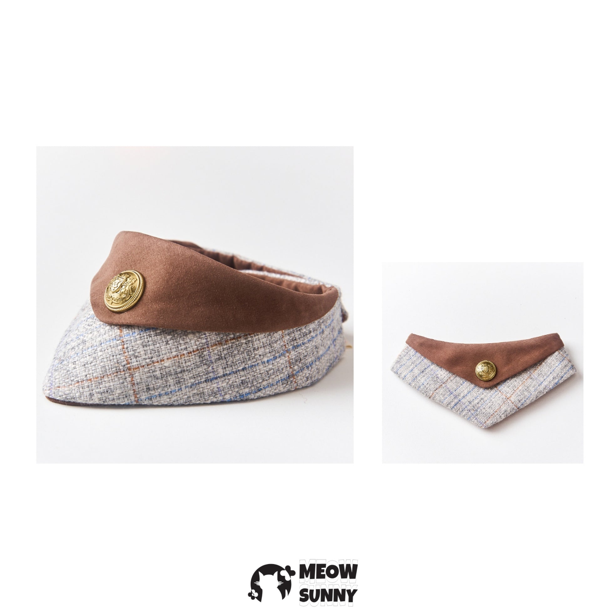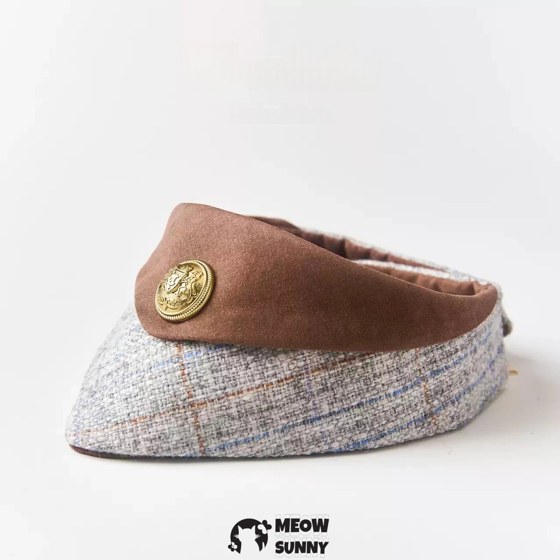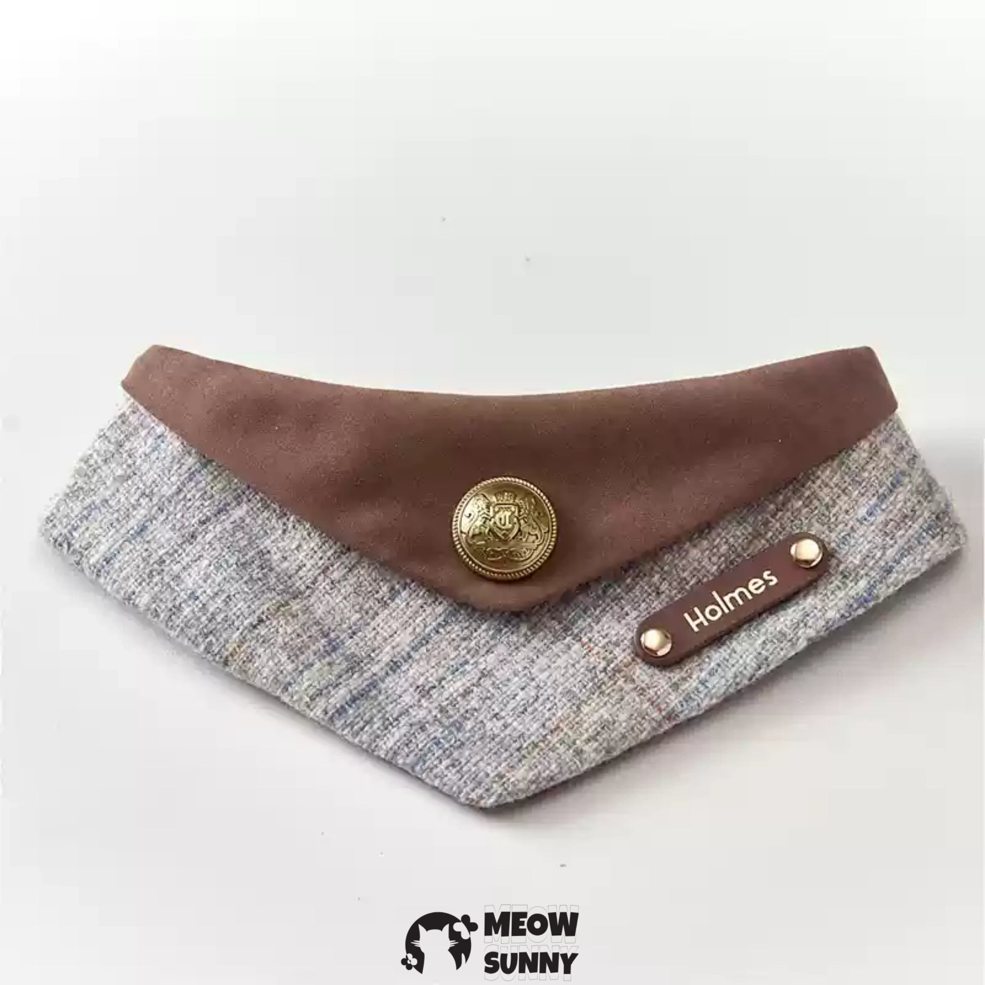Brown Plaid Pet Cat & Dog Triangle Bib,Customizable Name
