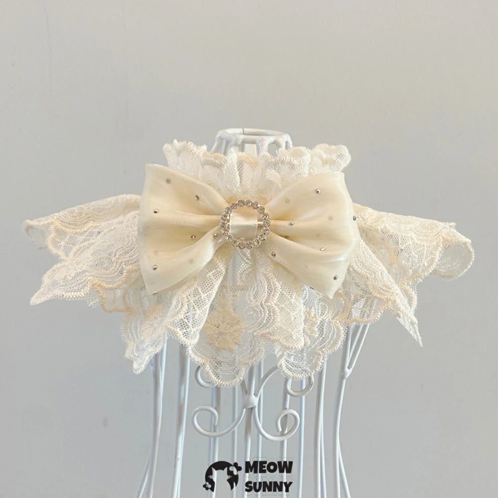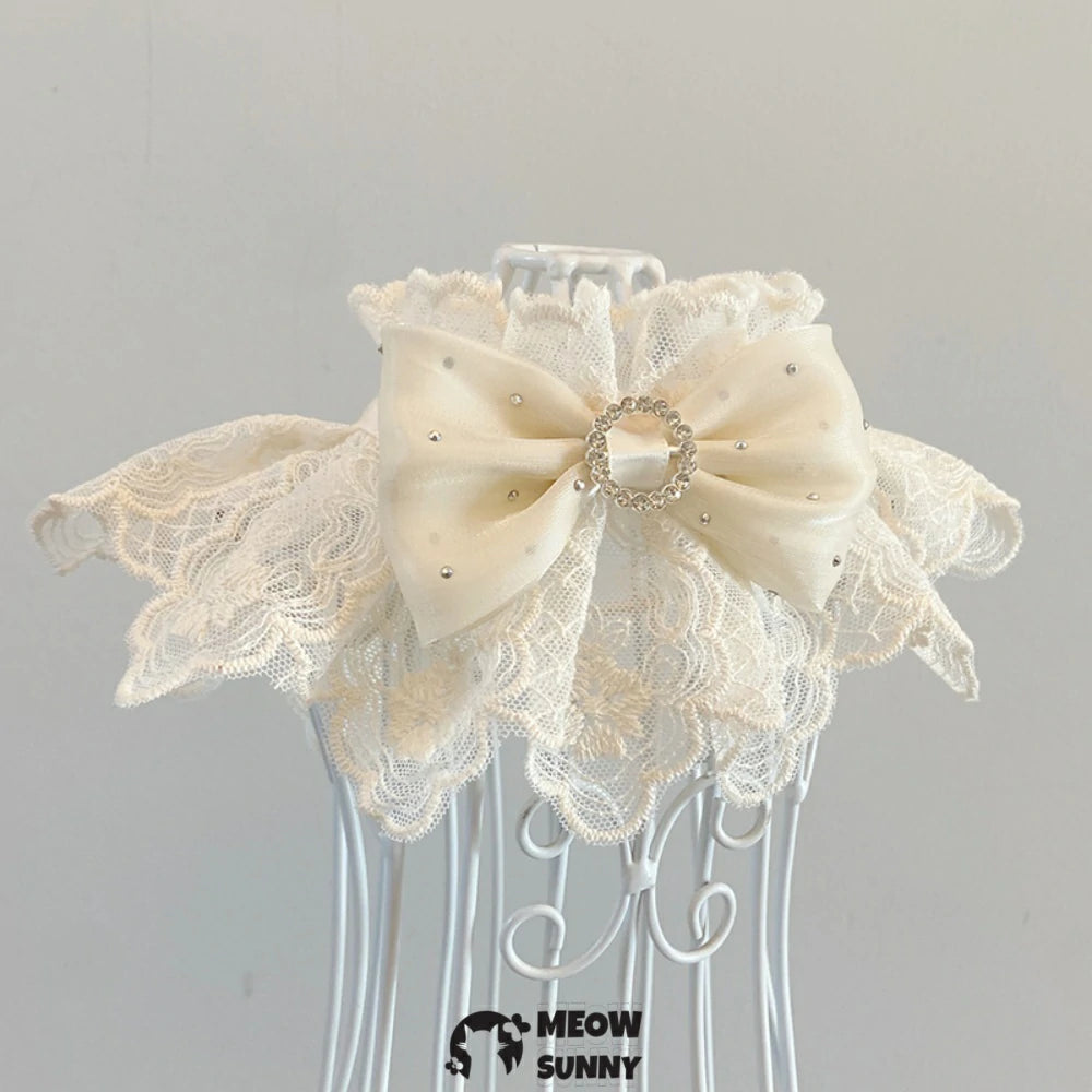 Pet Lace Bib Collar with Cute Bow, Bibs Soft Easy to Wear Comfortable Bow, Sweet Basic Collars Scarf for Dog Cat Decoration Cats Costume Puppy Dress Up Accessorie