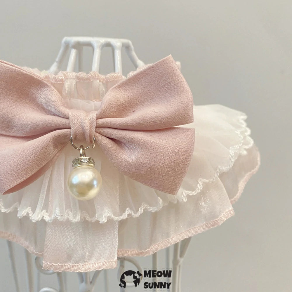 Pet Bib Bandana Elite Style, Cute Cool Elegant Comfortable Semicircle Saliva Towel Decoration with Black Lace Bowknot and Pearl for Small Medium Cat Dog